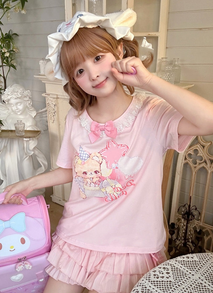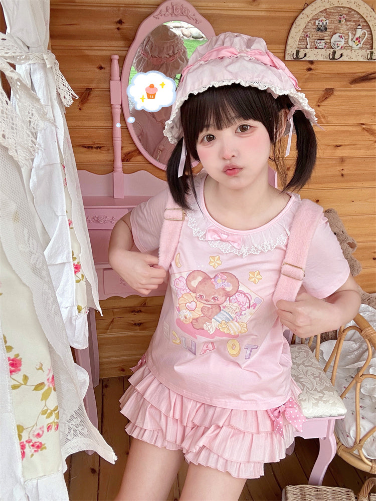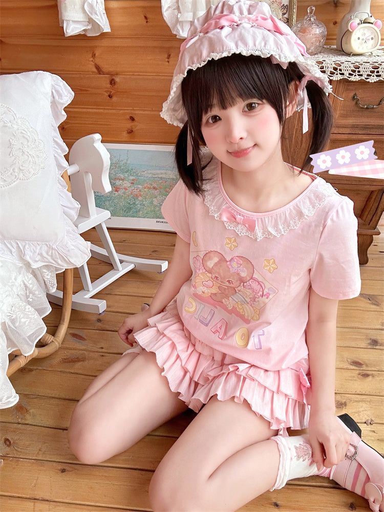 ピンクと白のオールドスクールロリータファッションドレス、蝶結びディテール、ロリータJSKセット