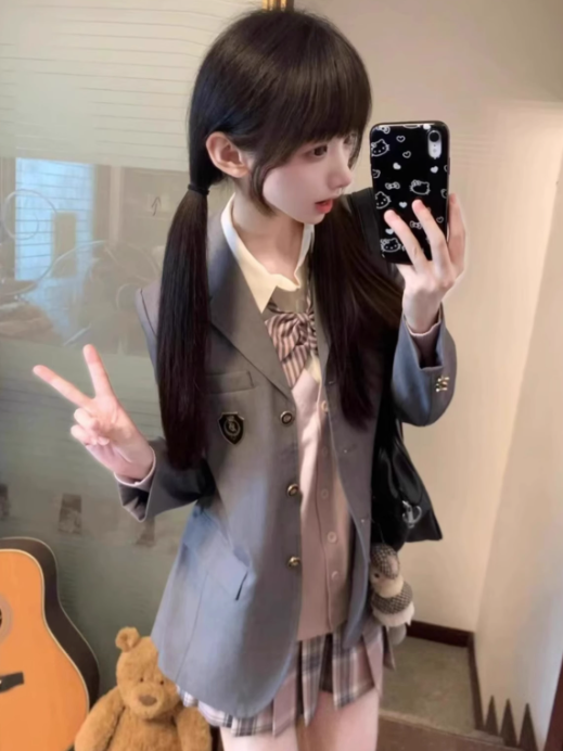Pink Plaid 39CM Uniform JK Skirt Pleated Pattern