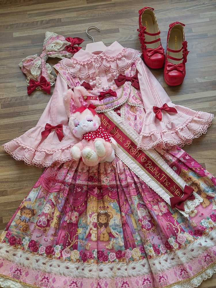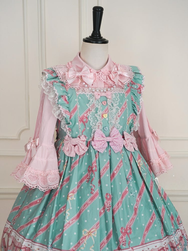 ピンクと白のオールドスクールロリータファッションドレス、蝶結びディテール、ロリータJSKセット