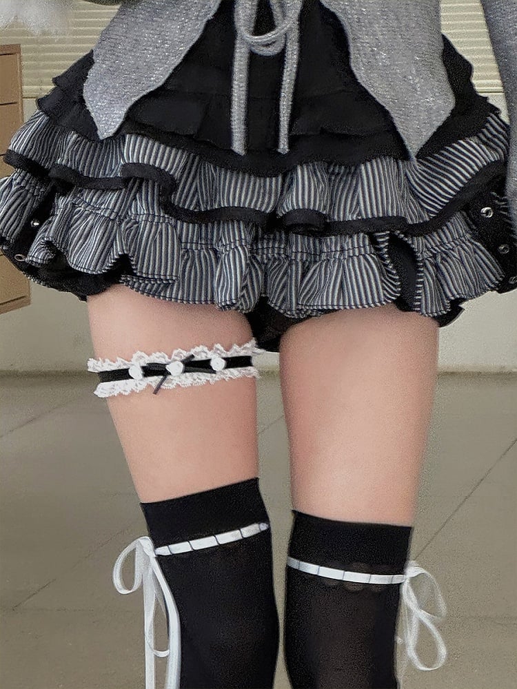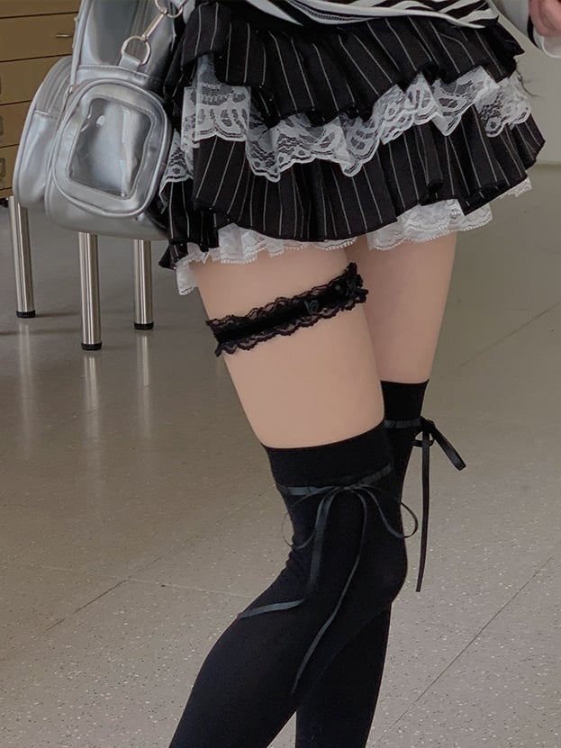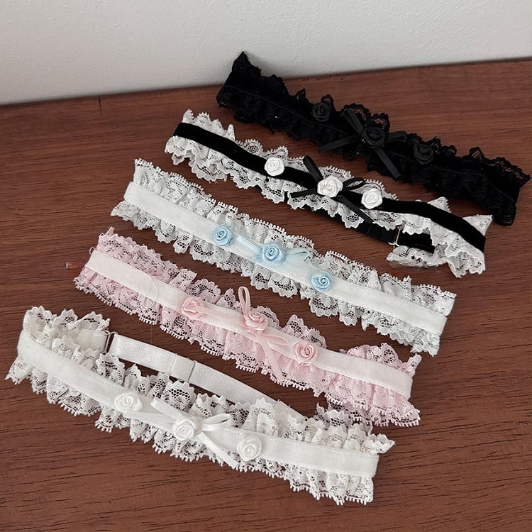 ピンクのスイートローズの蝶結びレーストリムのレッグループ