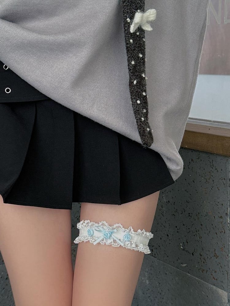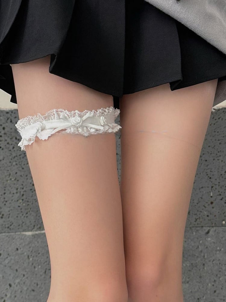 愛らしいピンクのレッグループ。繊細なレースのトリムが目を惹きます。バラのリボンが可愛らしく、どんな装いにも素敵なアクセントを添えます。快適でスタイリッシュなこのレッグループ。ファッションに敏感な方にぴったりのアクセサリーです。