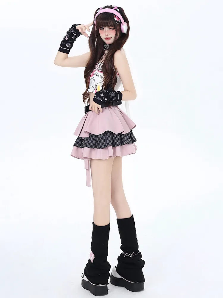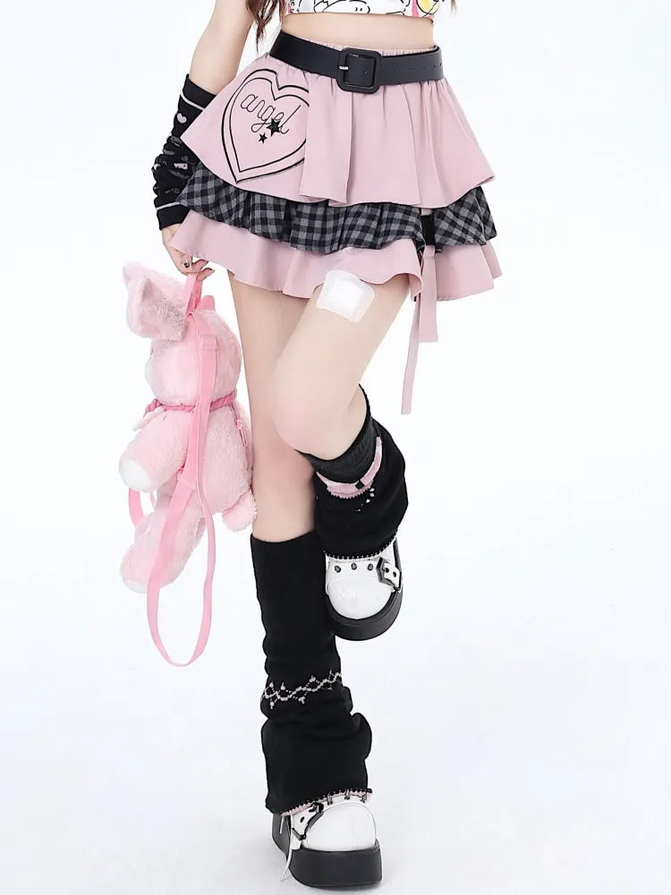 ピンクのティアードスカートとスイートフリーウエストベルト