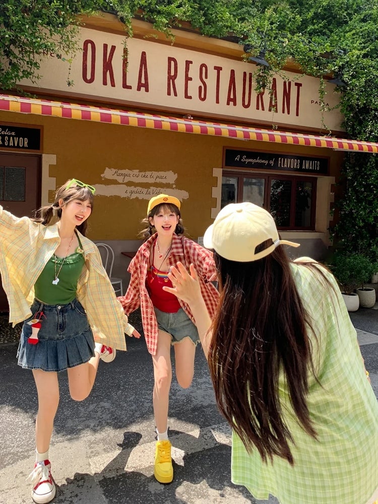 レッドフェイクツーピースキャミソールトップとレッドチェックシャツセット