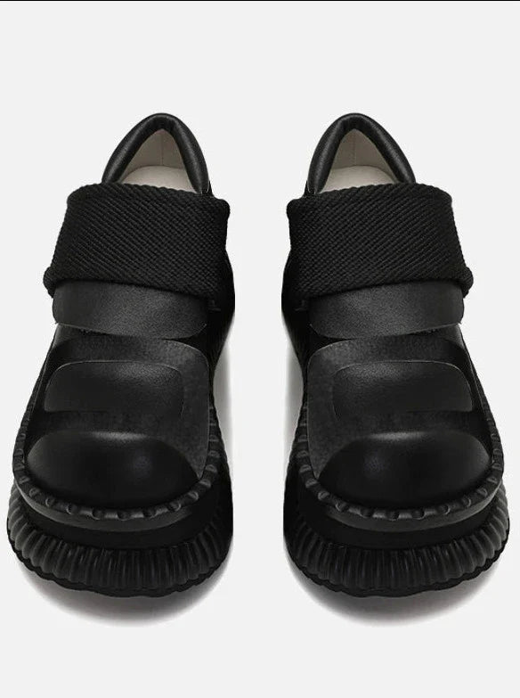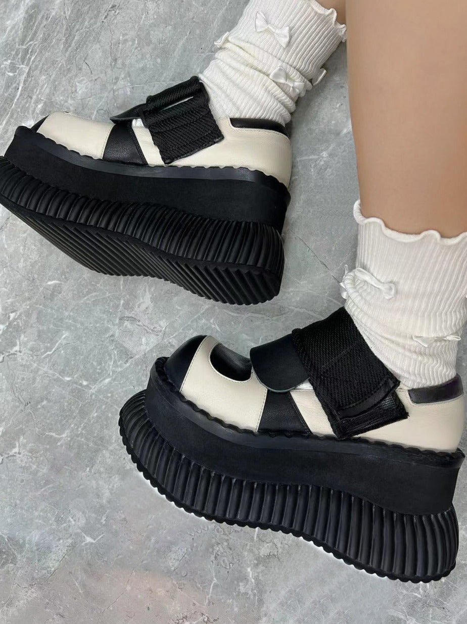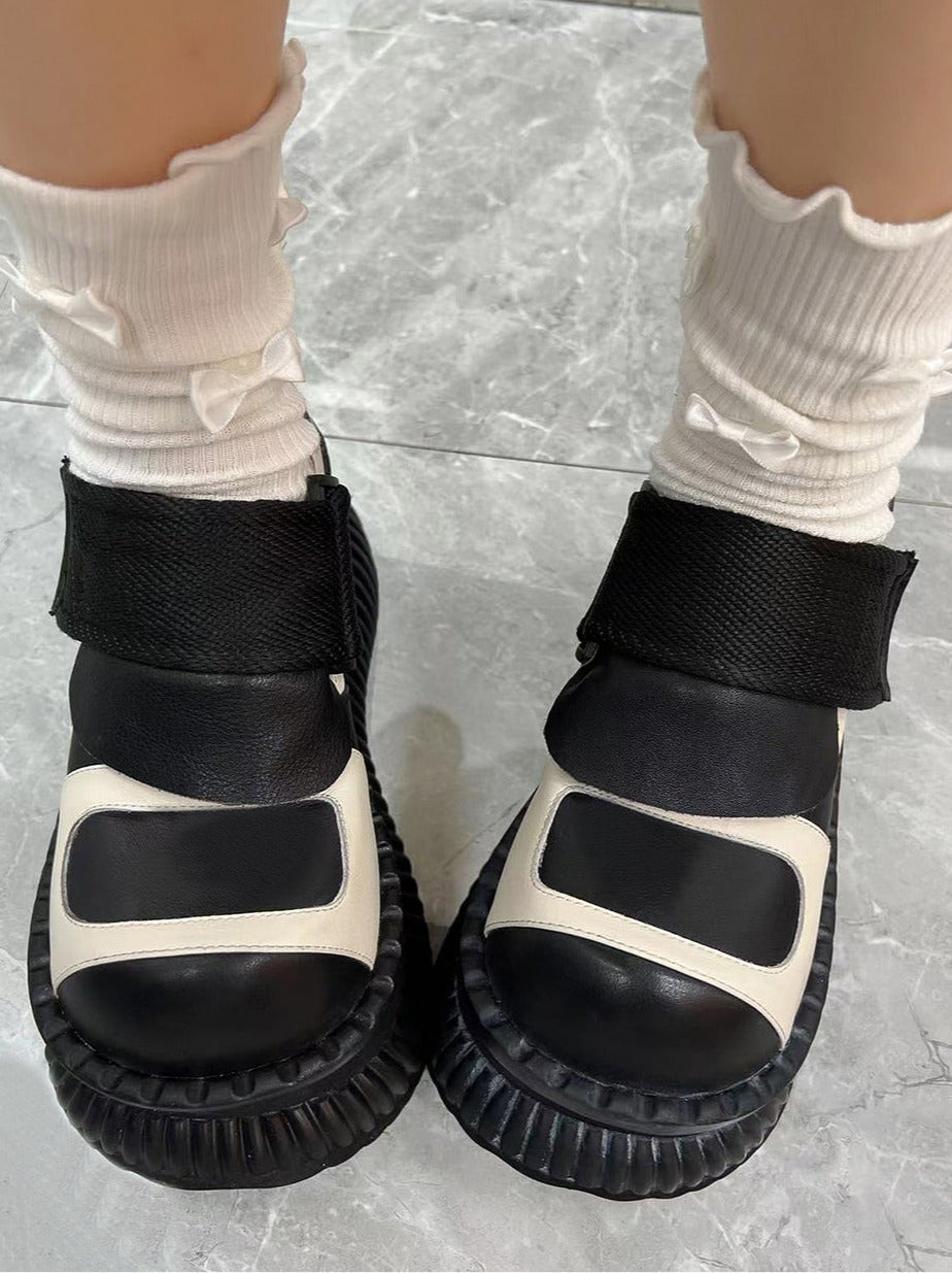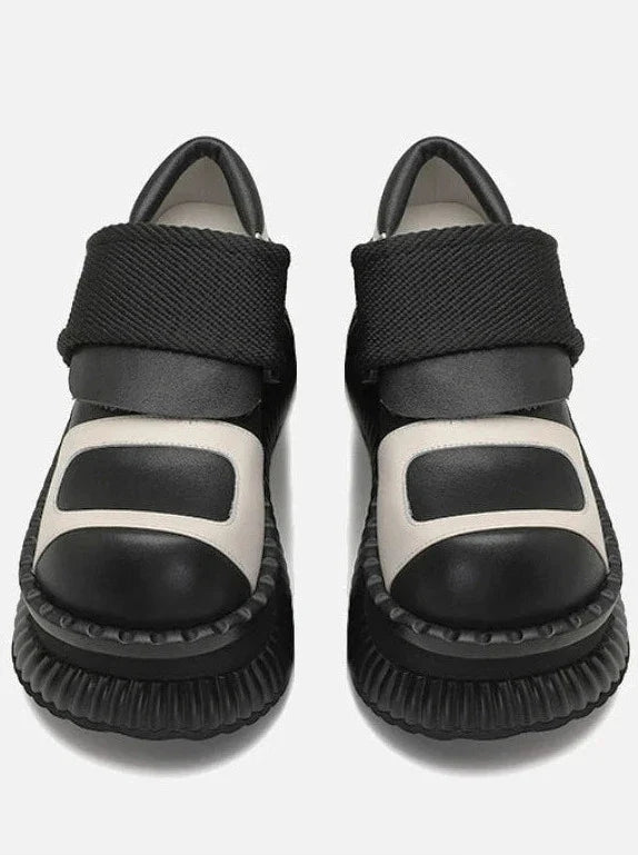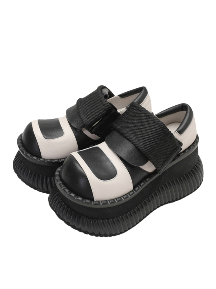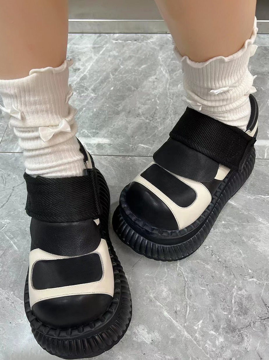 プラットフォームカジュアルシューズレザーベルクロ