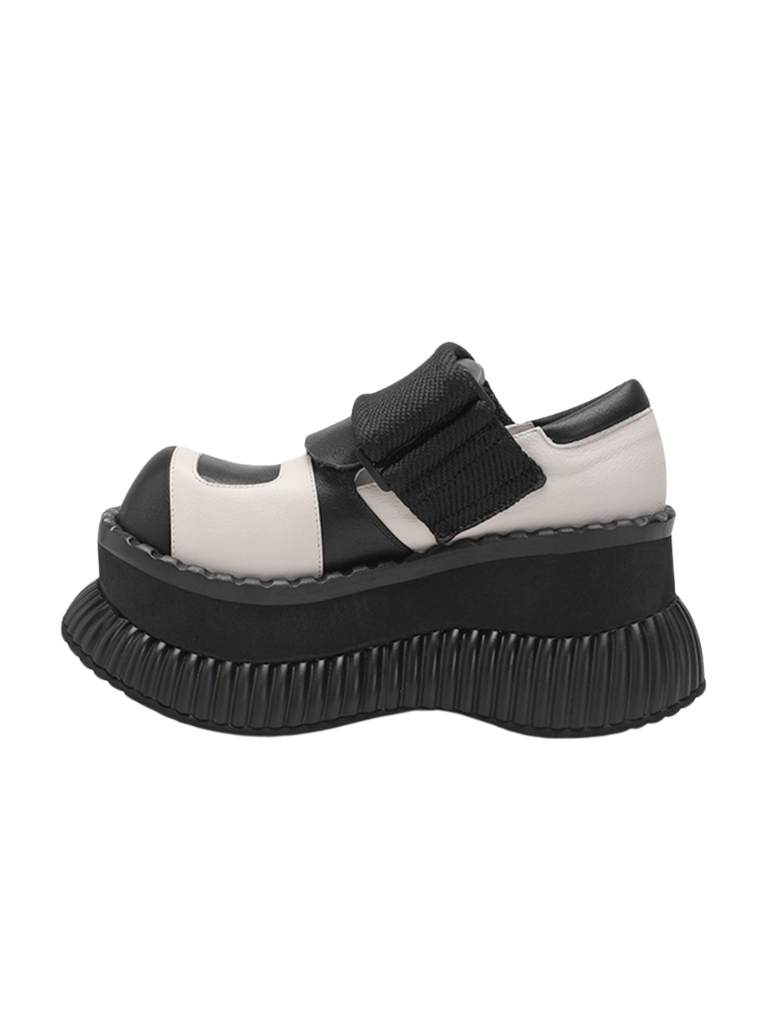 このプラットフォームカジュアルシューズは、スタイリッシュで快適な一足をお探しの方にぴったりです。上質なレザーを使用し、マジックテープで簡単に着脱できます。コーディネートに可愛らしさをプラスしてみませんか。