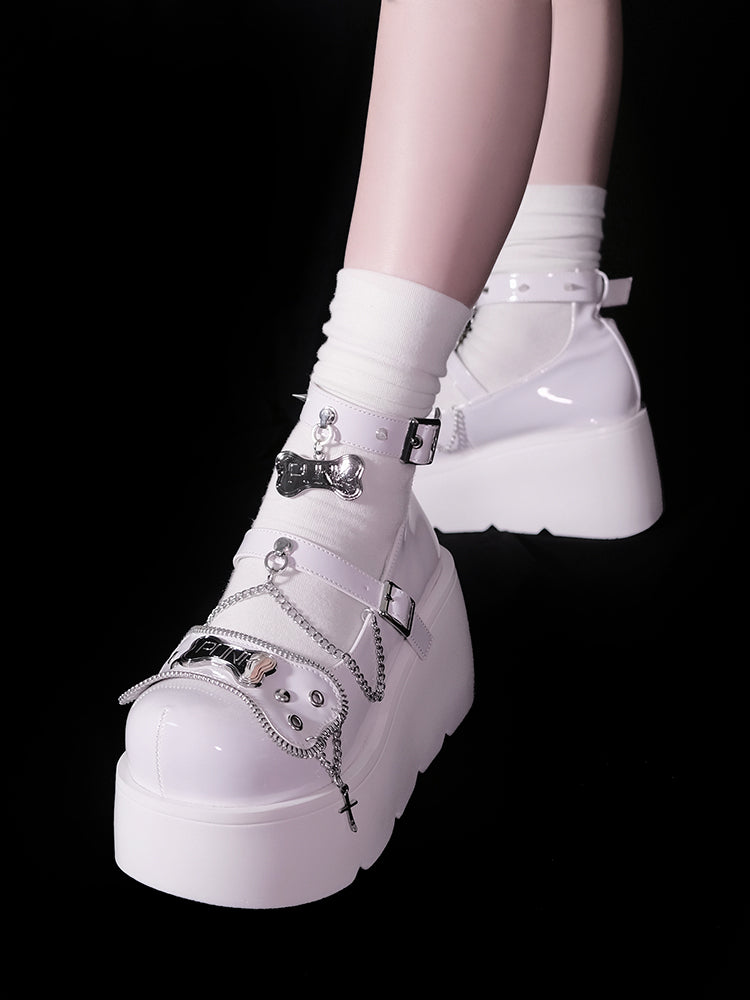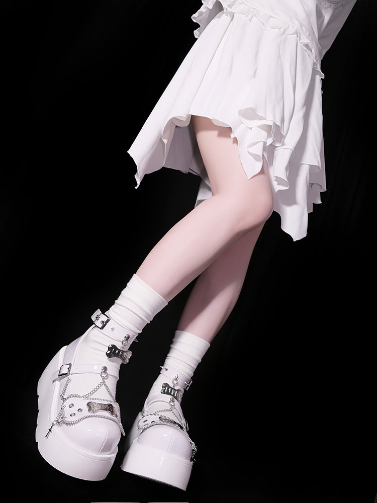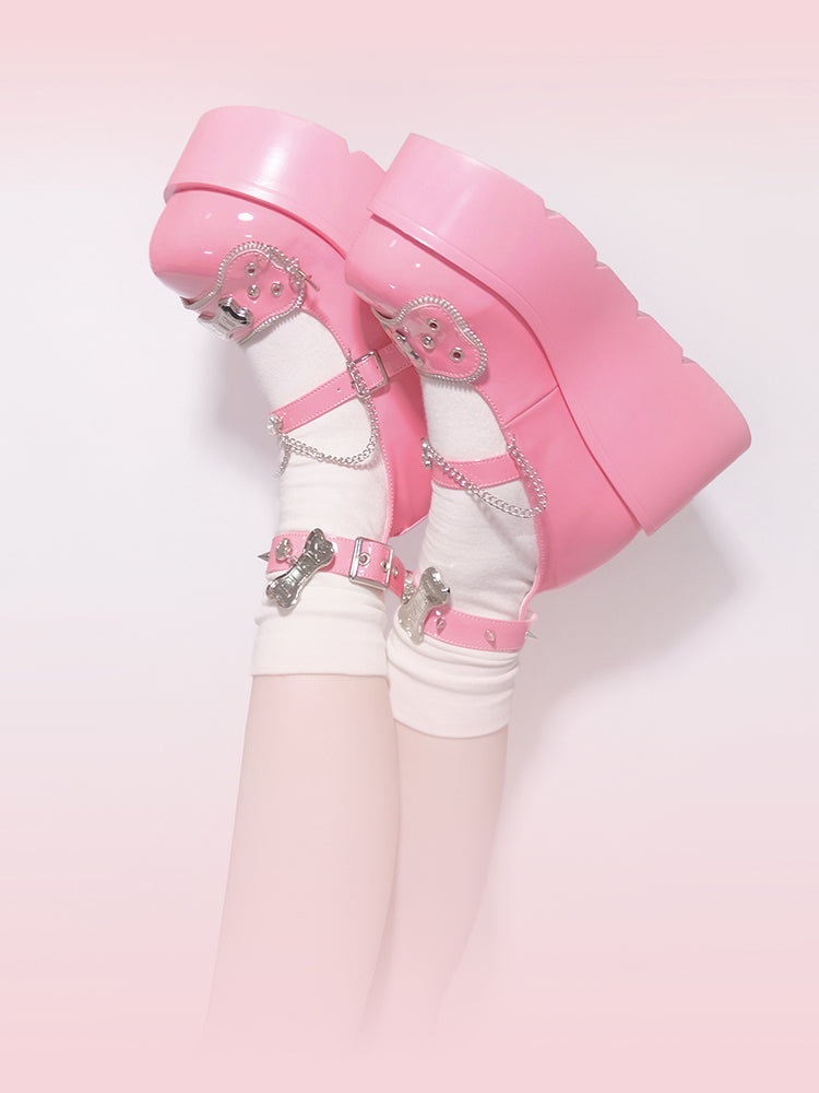 プラットフォームリベットパンクボーンミレニアムシューズで、エッジの効いた愛らしいスタイルを演出しましょう。大胆なプラットフォームデザインと精巧なリベットのディテールが、周りの視線を釘付けにします。このシューズを履けば、キュートなアクセントでスタイルがワンランクアップ。