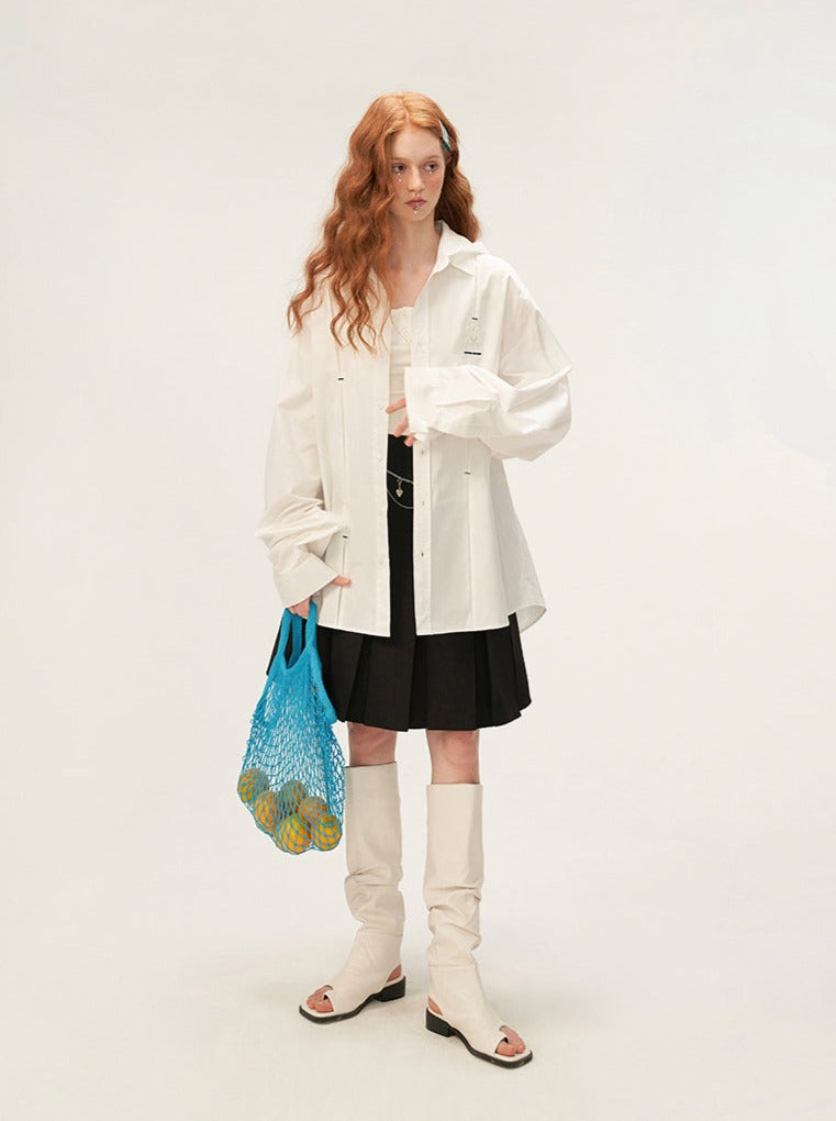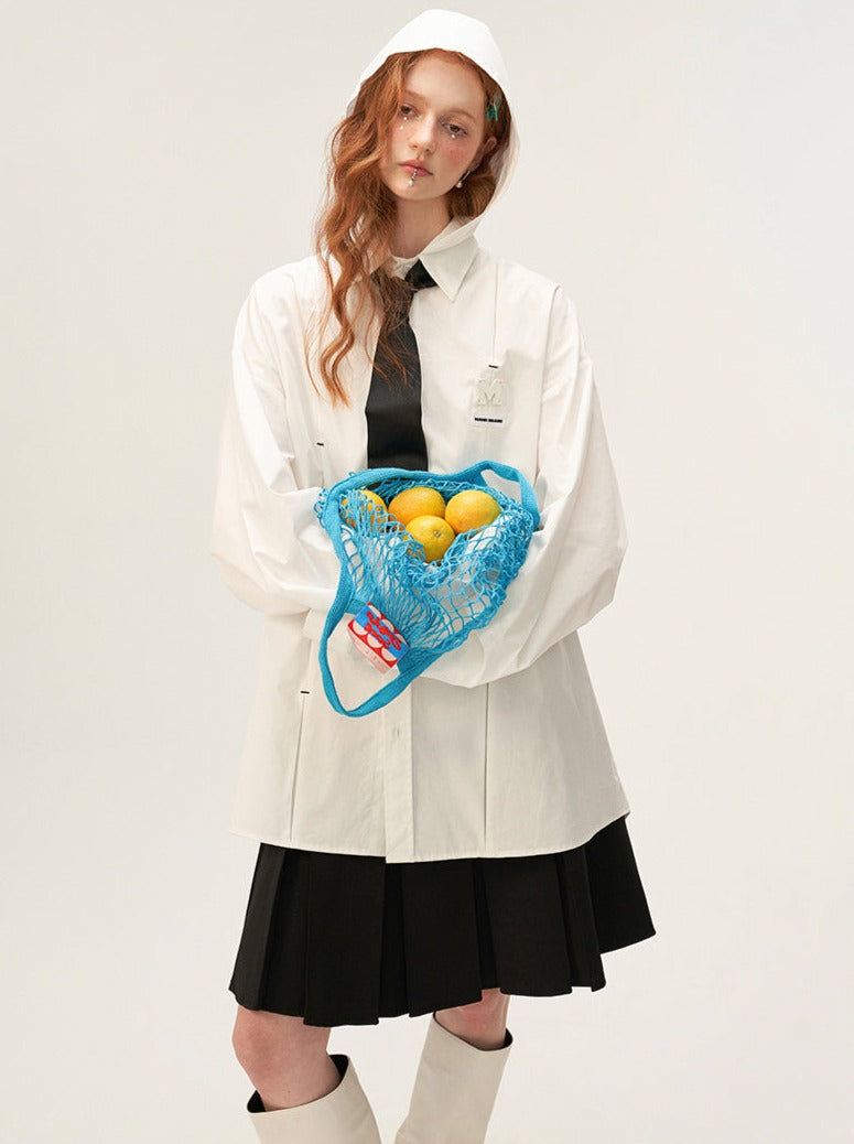 愛らしいプリーツフードシャツのご紹介です!上質な素材を使用した、デコンストラクトなダークカラーのシャツは、ユニークなプリーツデザインと便利なフードが特徴です。ワードローブに欠かせないこのシャツで、スタイリッシュで快適な着心地をキープしましょう。