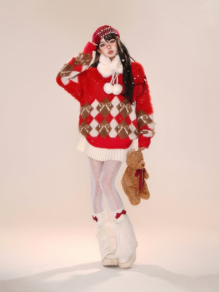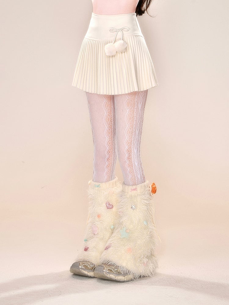 取り外し可能なポンポンとリボン飾りが付いたプリーツスカート