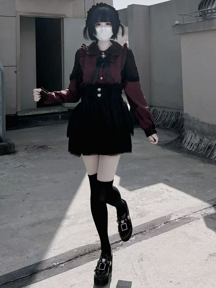 黒と白のオールドスクールロリータファッションドレス蝶結びロリータJSKセット