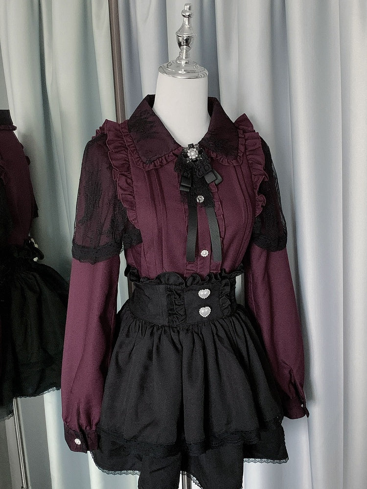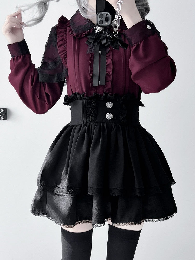 プリーツ衣装 - 黒シャツ ジライケイ スカート 赤 + 詳細 ティアード