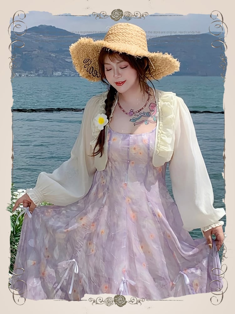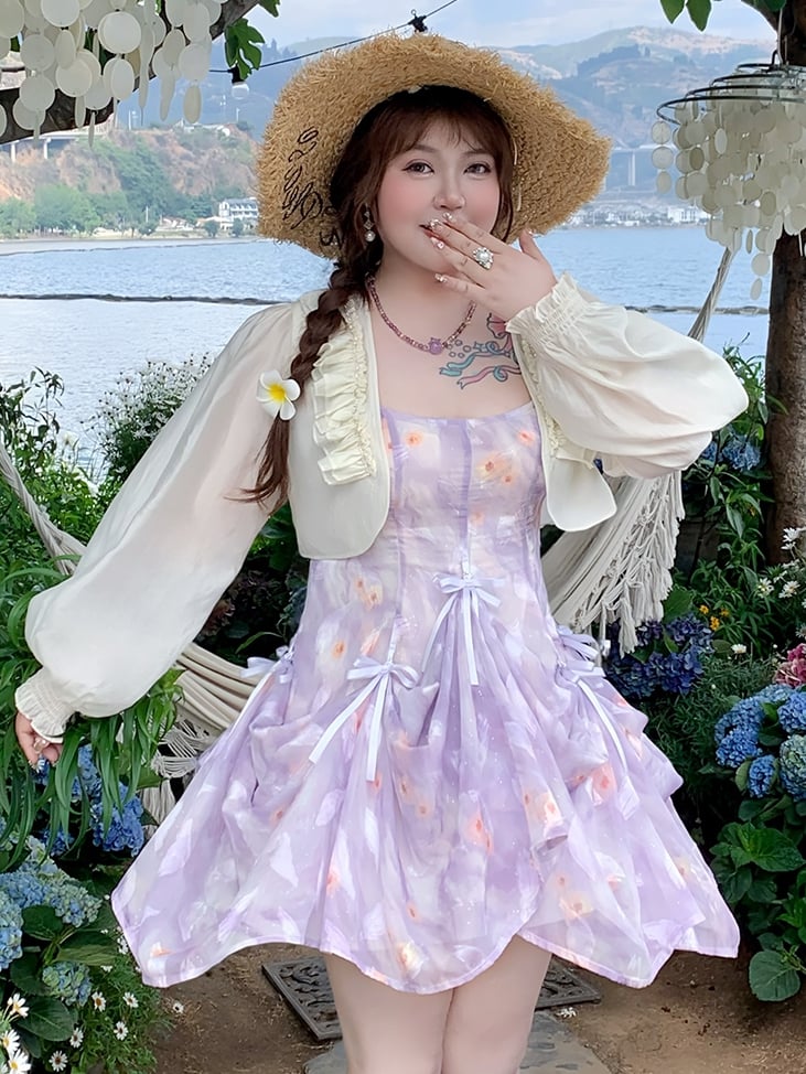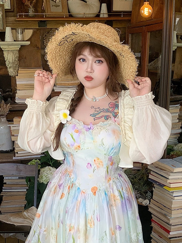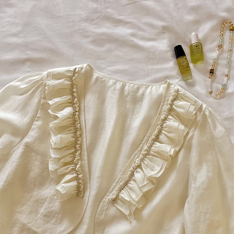プラスサイズ アプリコット フリルトリム オープンプラケット ラインストーン装飾トップス