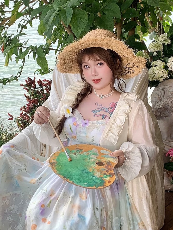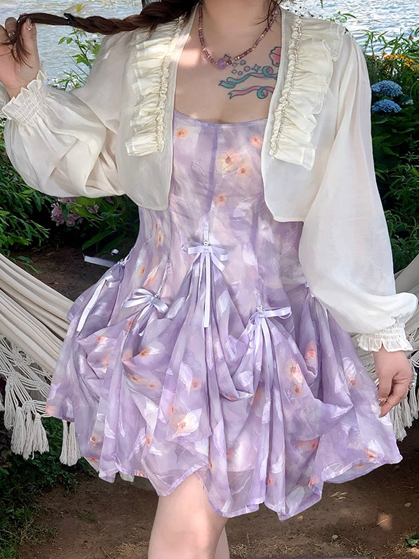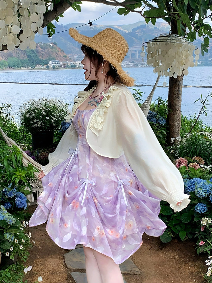 青と白のオールドスクールロリータファッションドレス 蝶結びディテール JSK セット