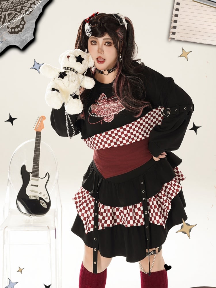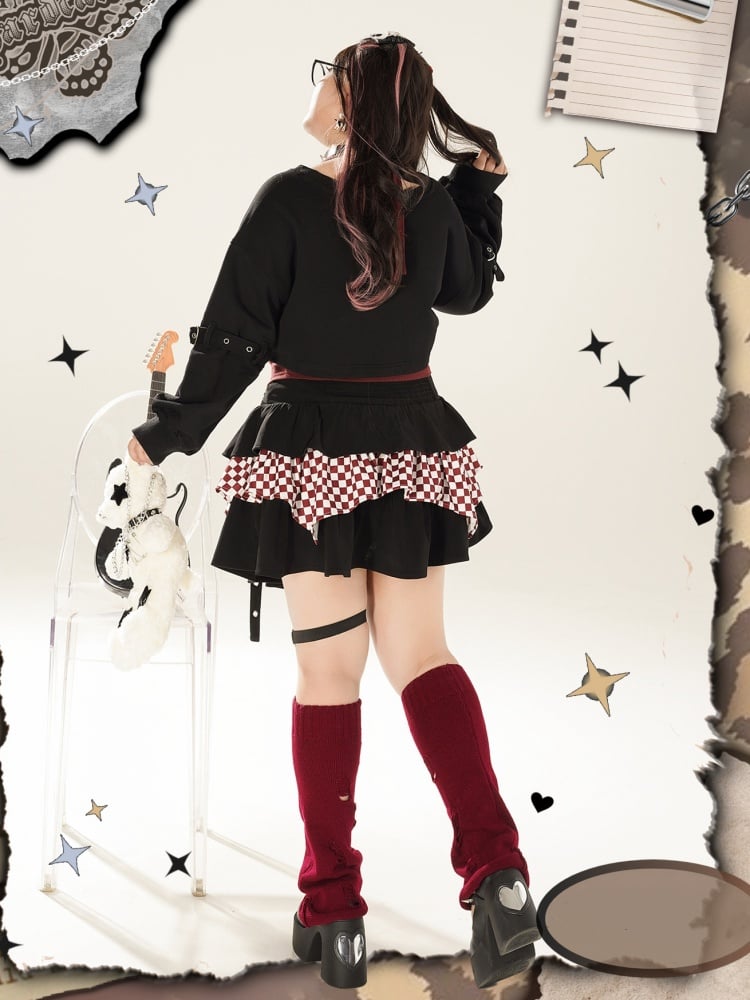 プラスサイズのチェック柄ブラック&レッドのクロップド丈スウェットシャツとレッドのホルターネックトップスで、注目を集めましょう。スタイリッシュさと着心地の完璧な組み合わせで、自信と可愛らしさを演出できます。このマストハブセットで、ワードローブをワンランクアップさせましょう。