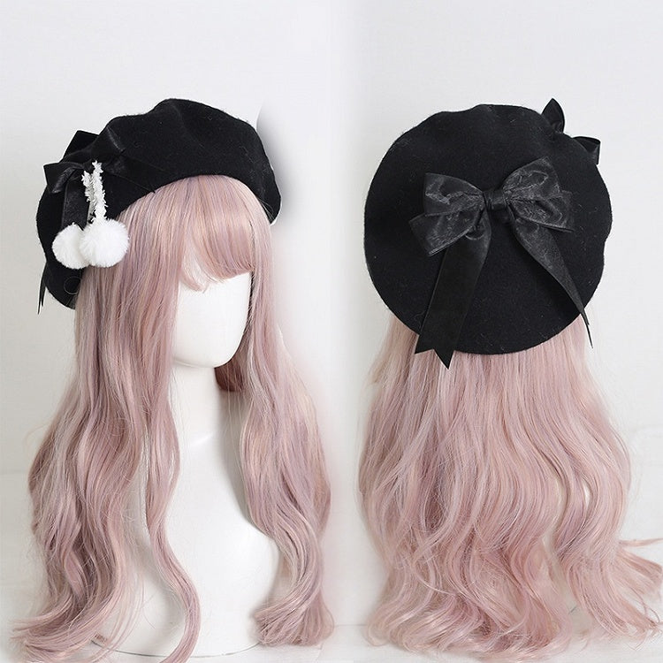 9 Colors Cute Sweet Girly-Style Beret With Bowknots And Pom-poms