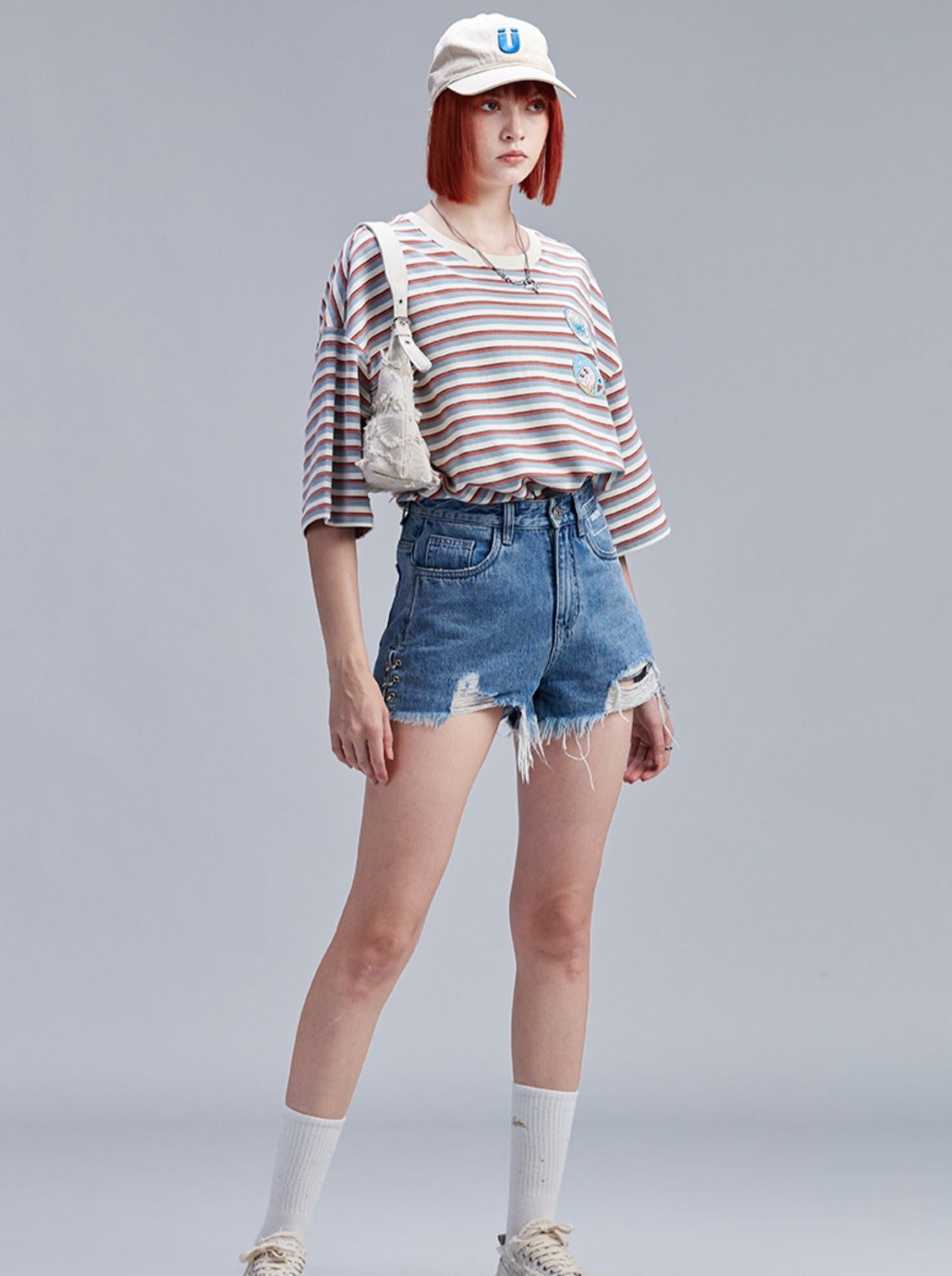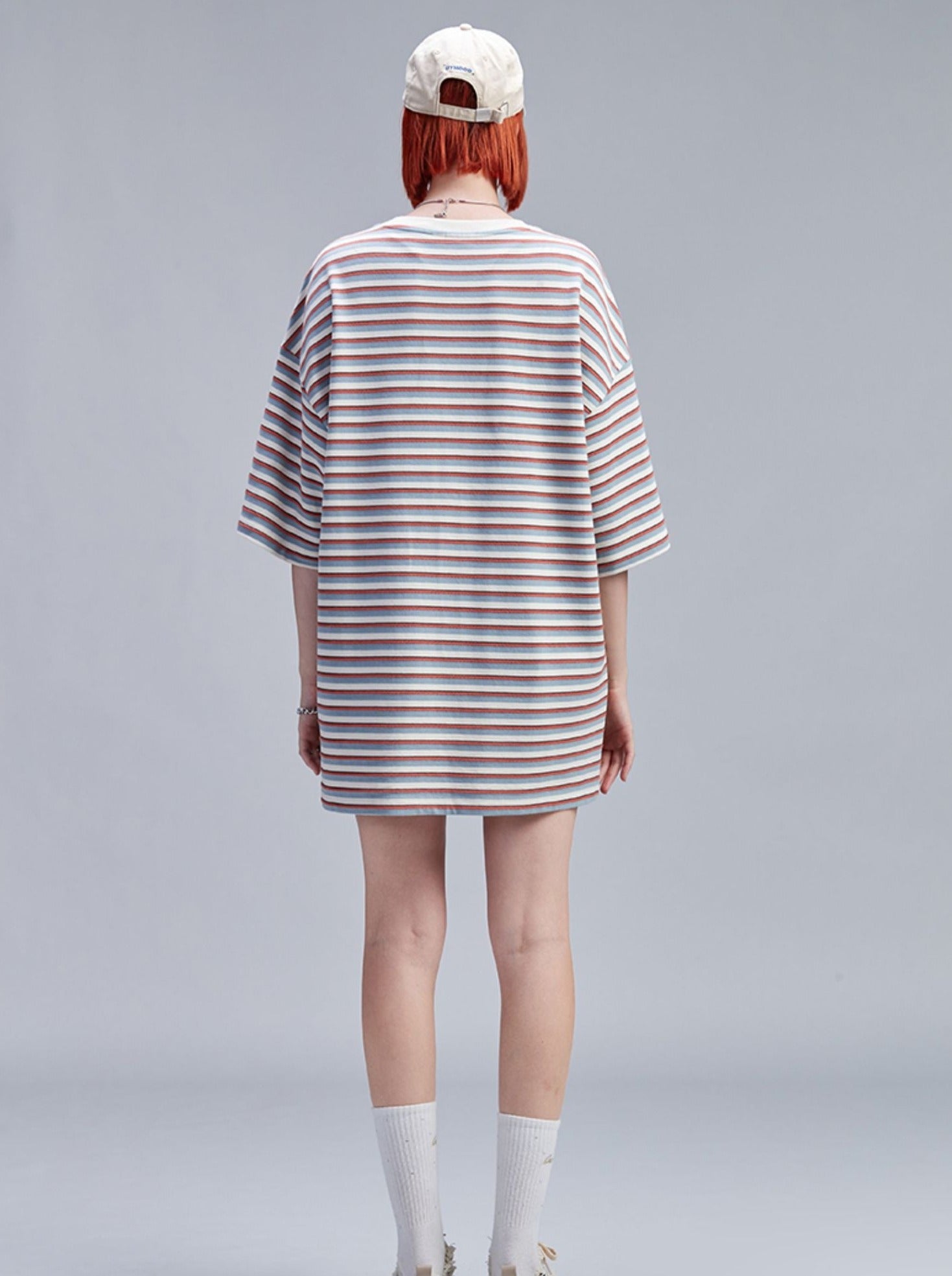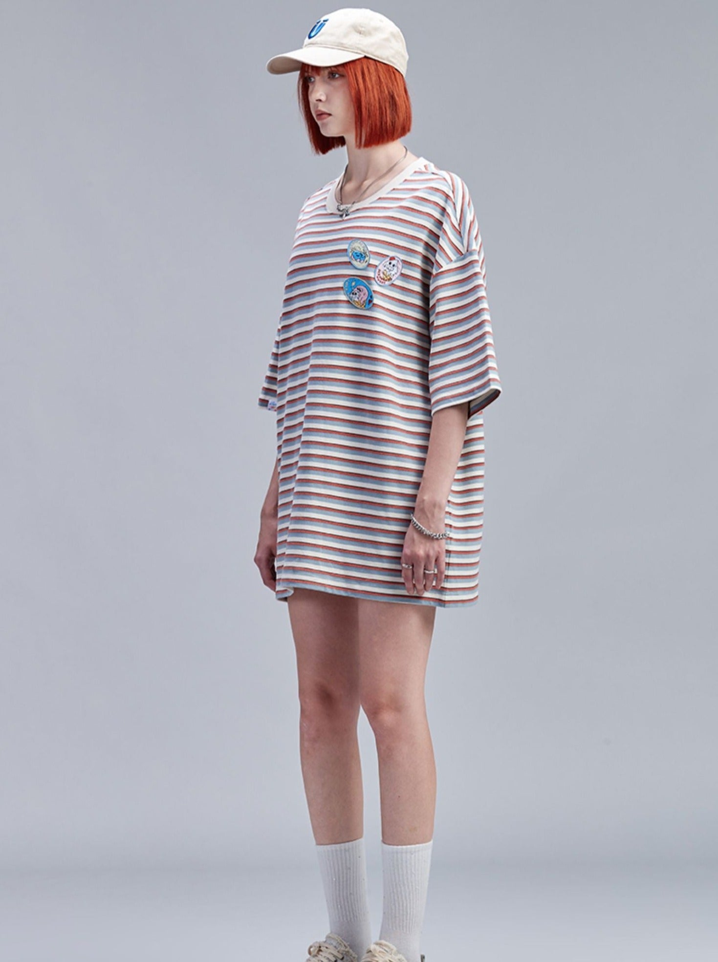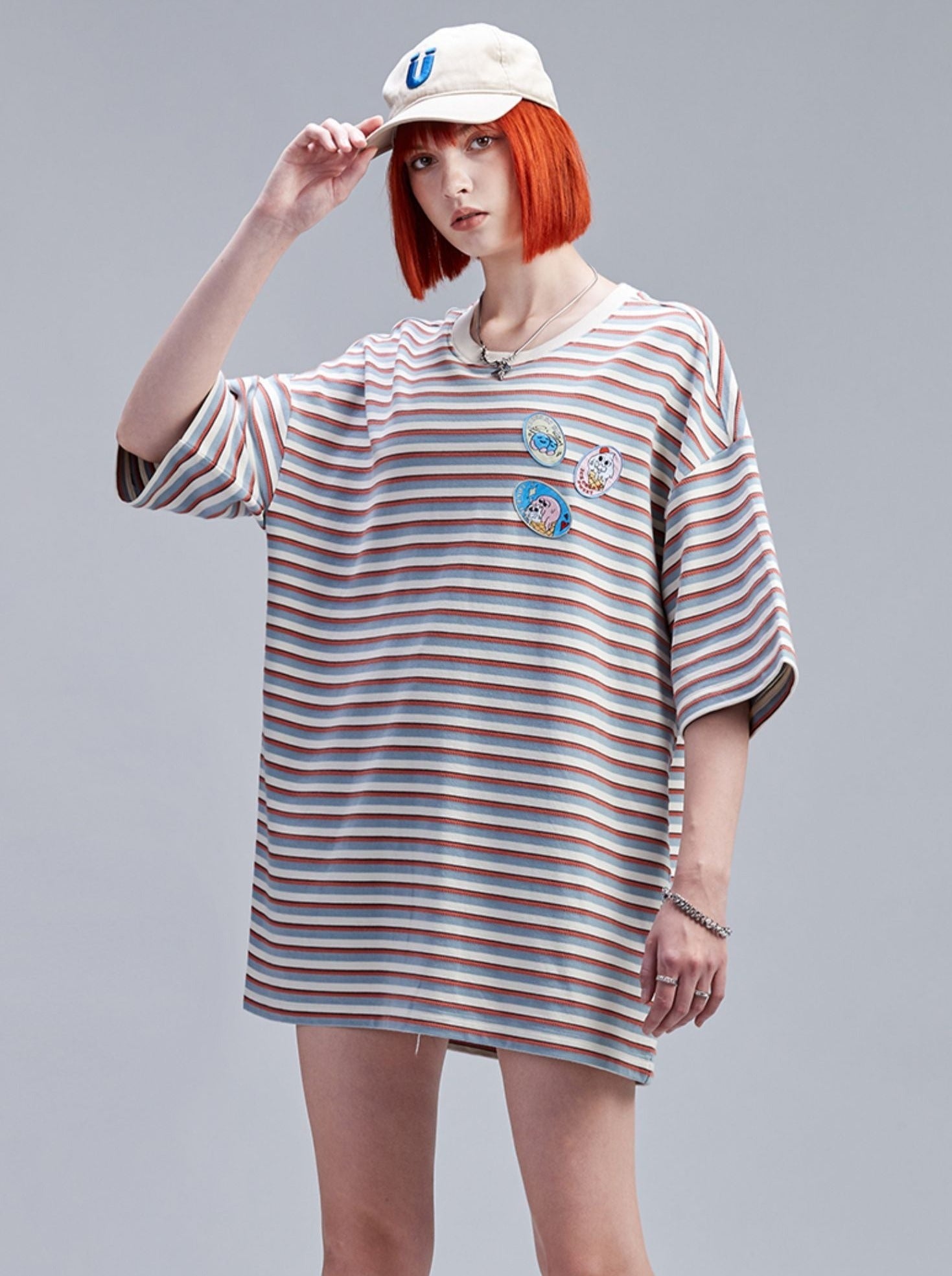 ポップスリムボーダールーズTシャツでワードローブをアップグレード。上質な生地を使用し、一日中快適な着心地を実現。スリムフィットデザインが、体のラインを程よく包み込みます。キュートなデザインとゆったりとしたフィット感で、スタイリングも簡単で、スタイルアップ効果も抜群です。