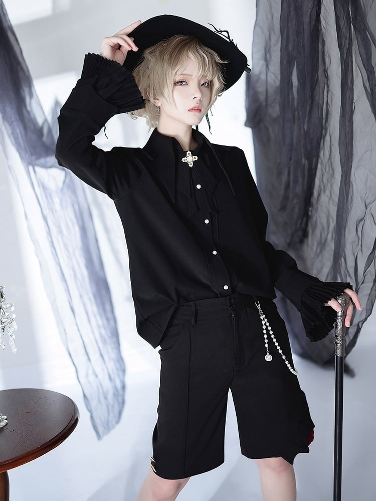 王子襟風の黒のポイントロリータ王子シャツ