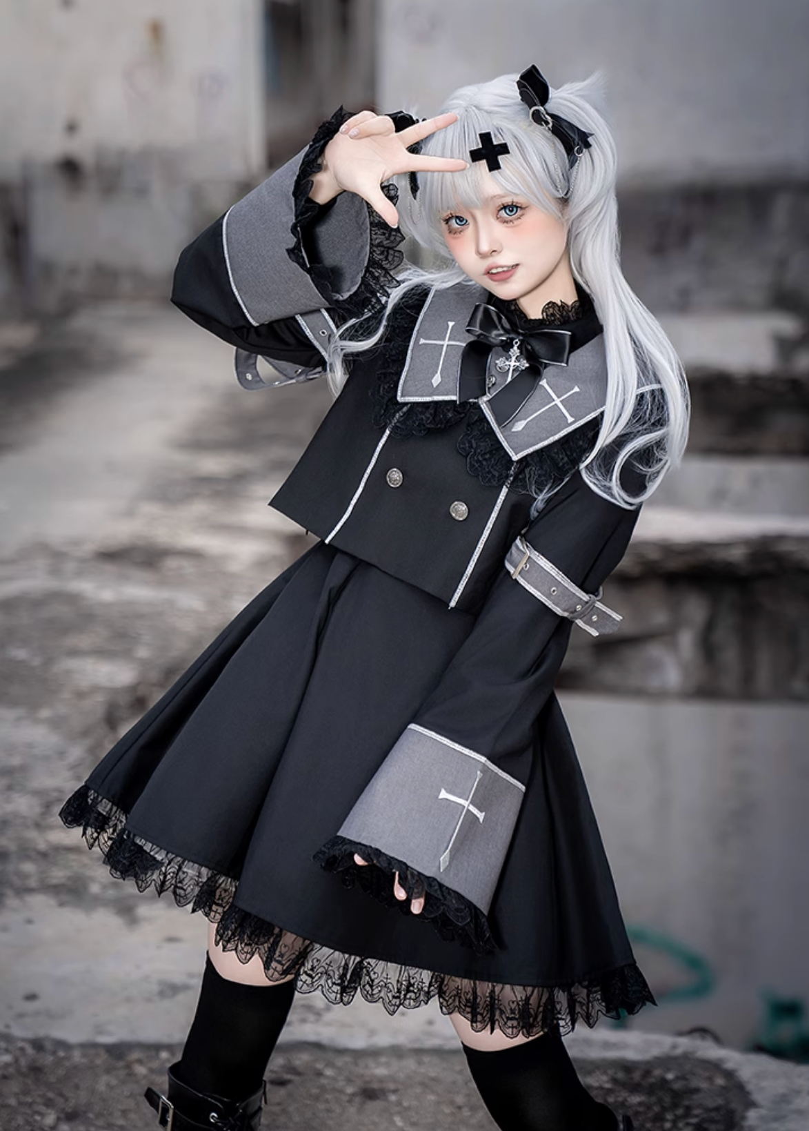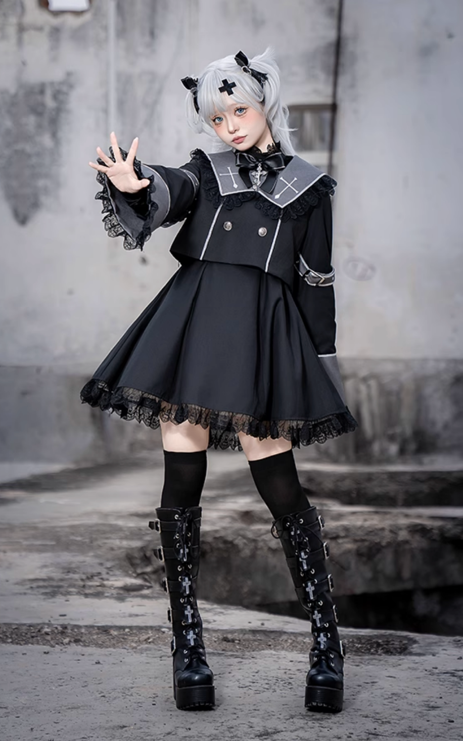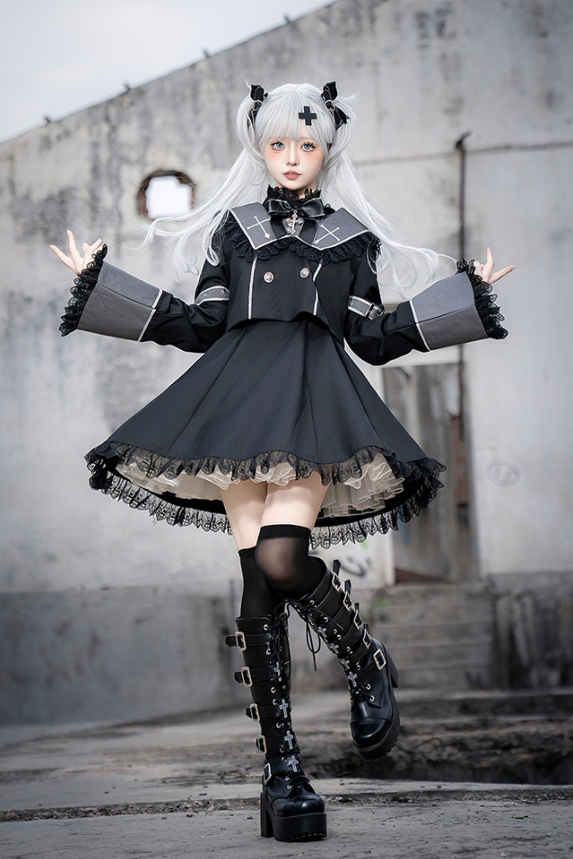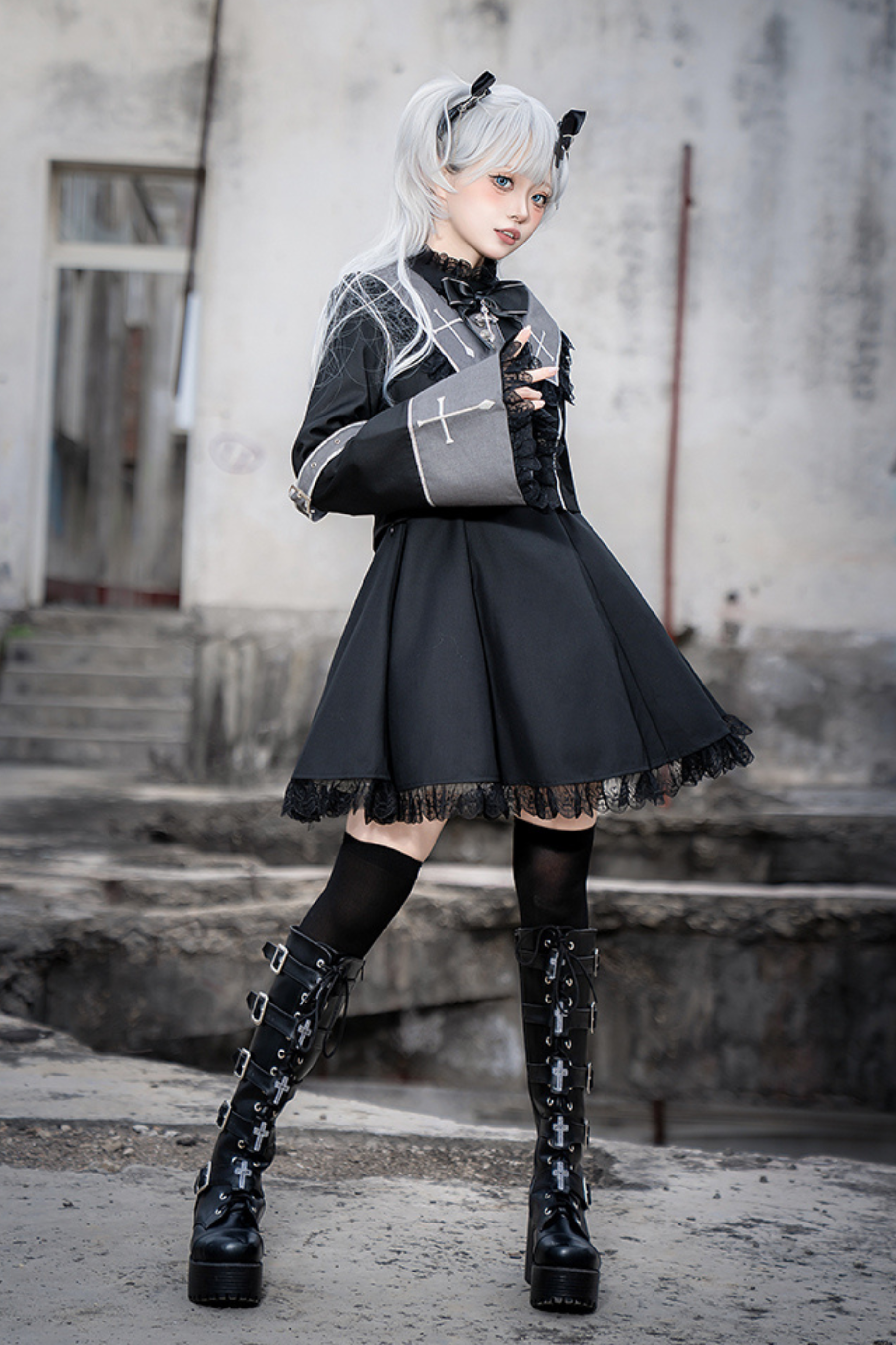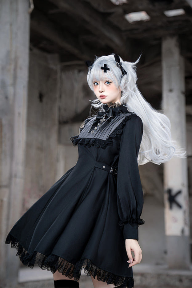 黒と白のオールドスクールロリータファッションドレス蝶結びロリータJSKセット