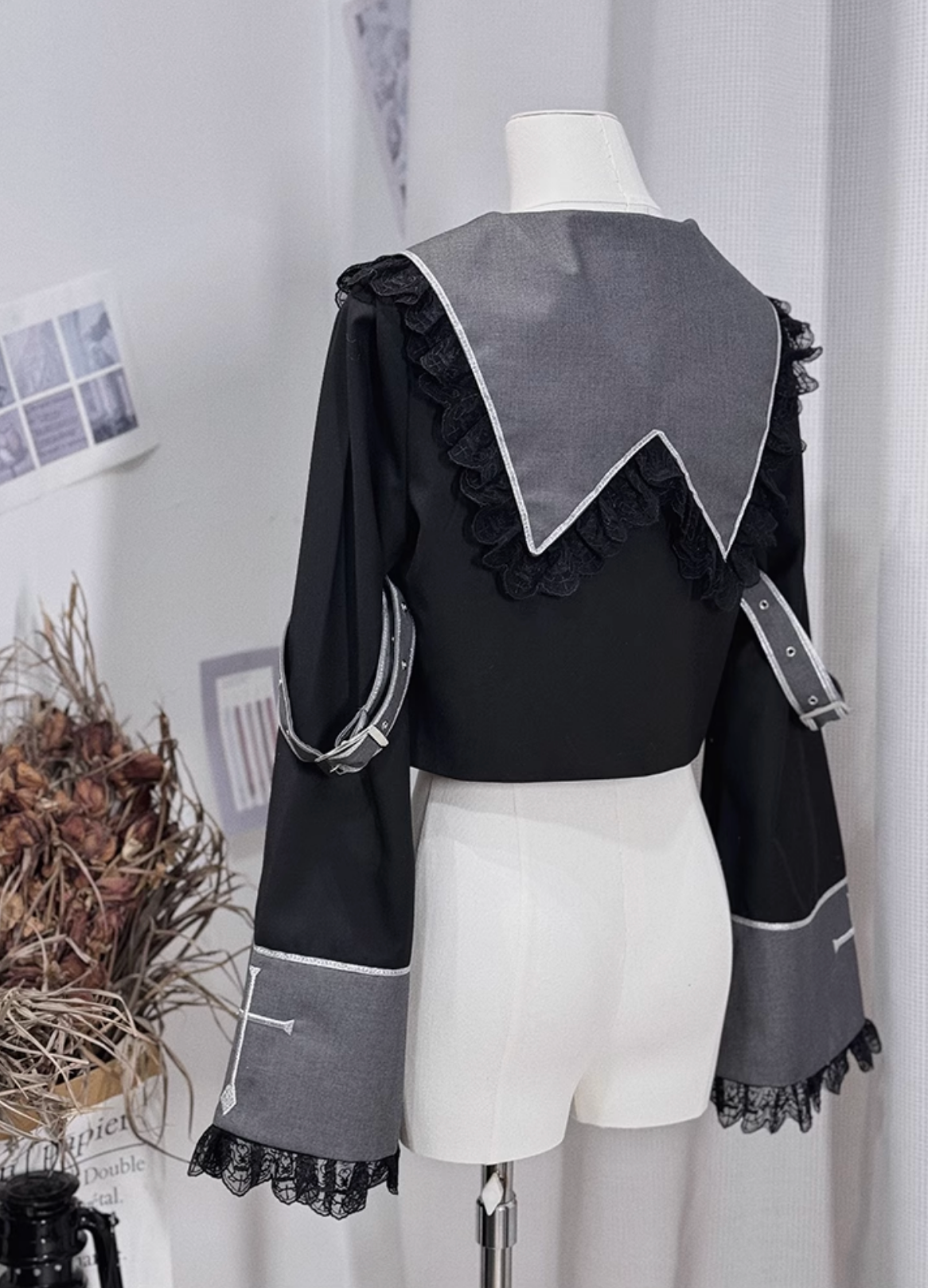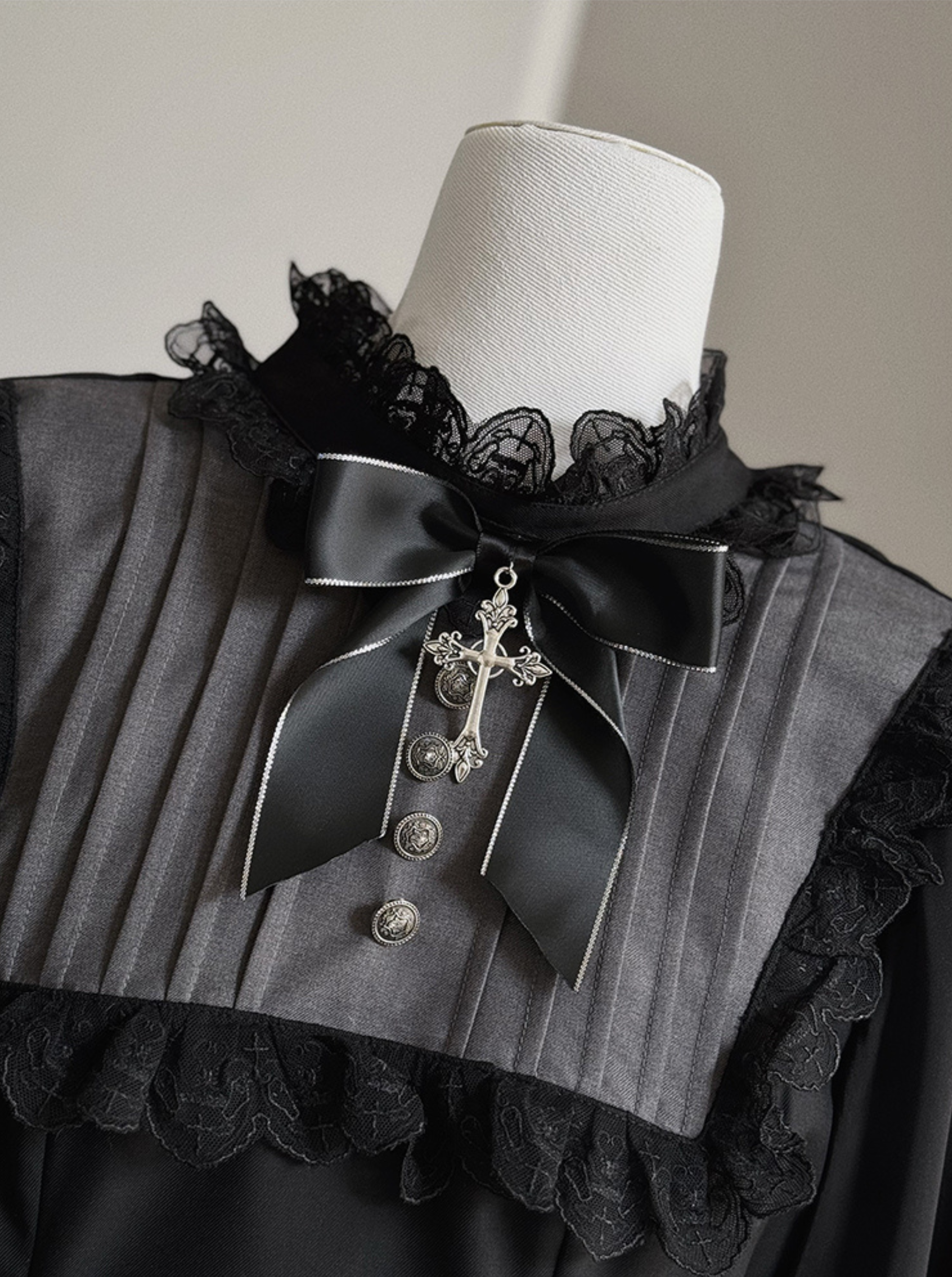 シャツとドレスにはクロスチャームのリボンアクセサリーが付いています