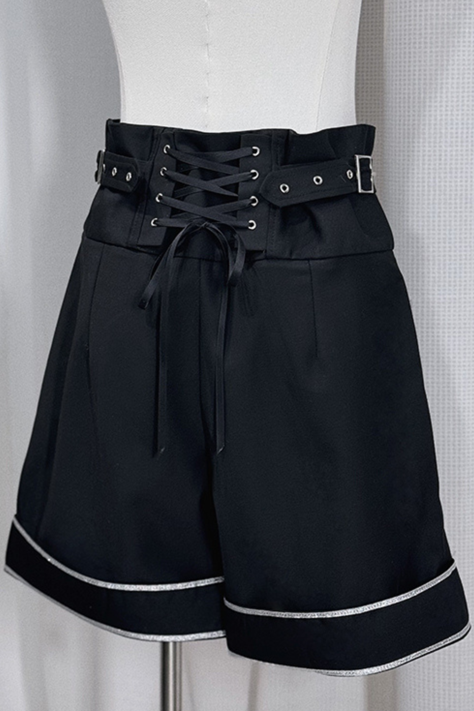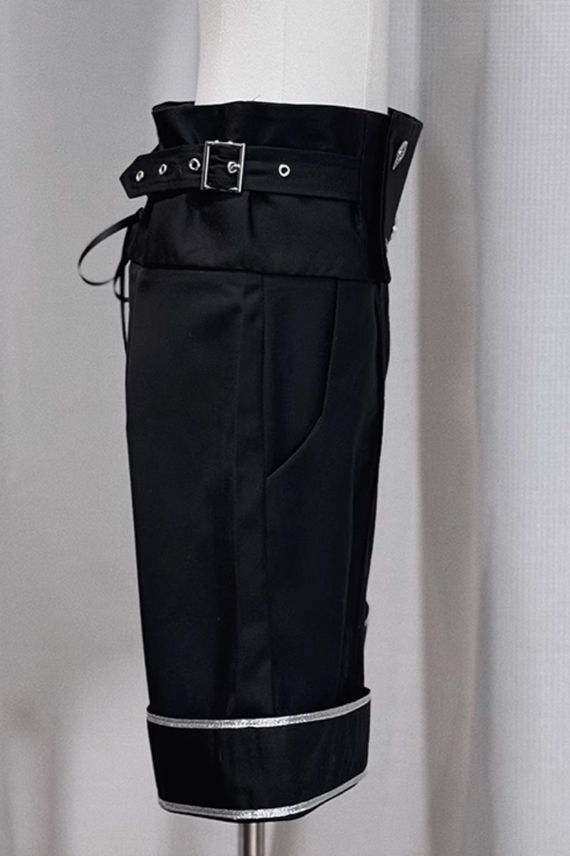 シルバートリムサイドベルトブラックショートパンツ