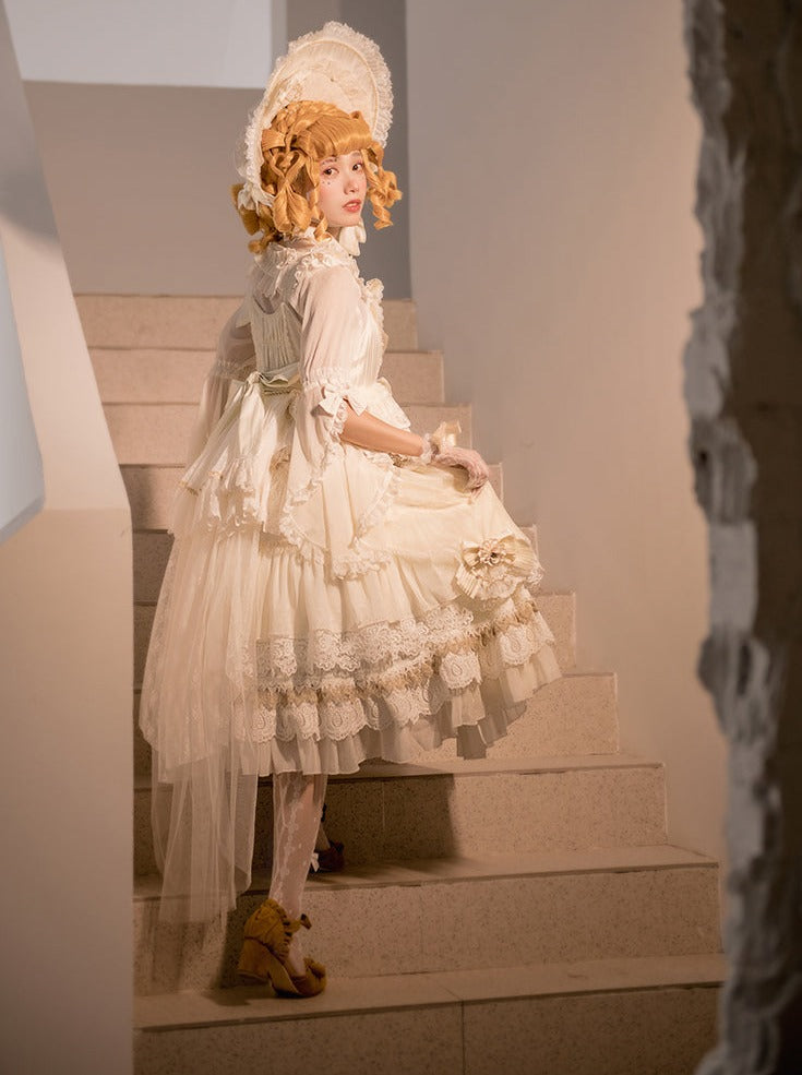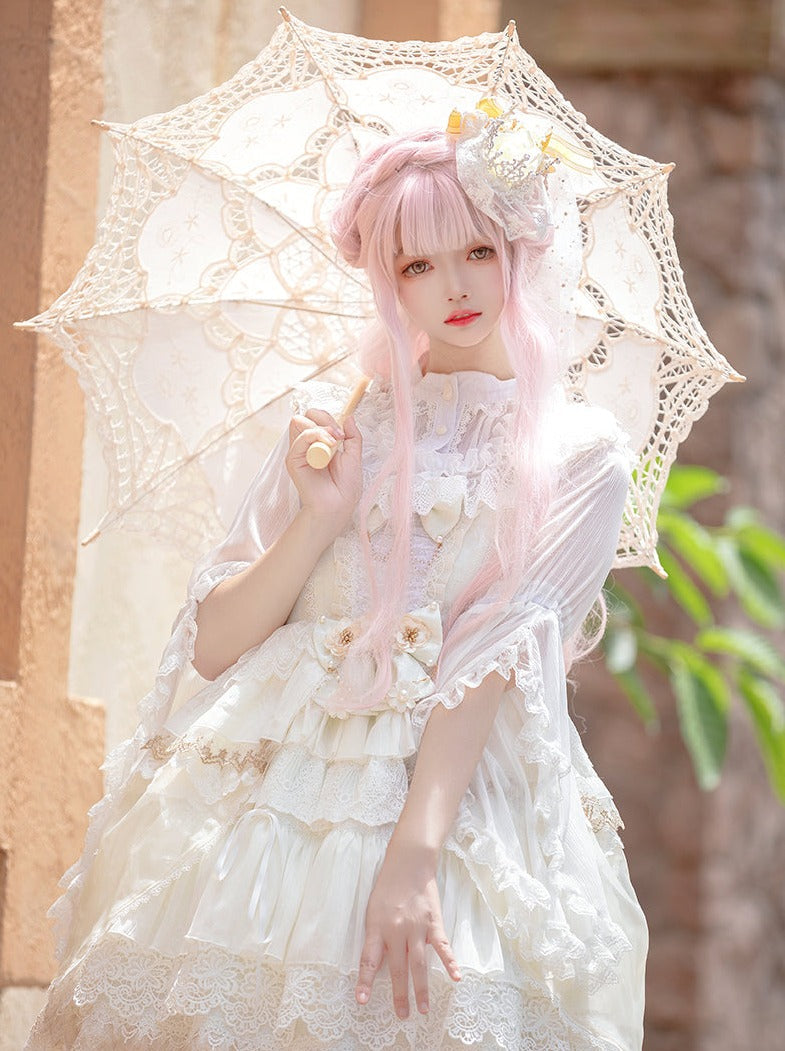 プリンセスロリータのウェディングドレスで、結婚式を華やかに演出しましょう!繊細なレースとキラキラ輝くジュエリーが、真にエレガントな雰囲気を演出します。この美しいドレスで、特別な日にプリンセス気分を味わってください。