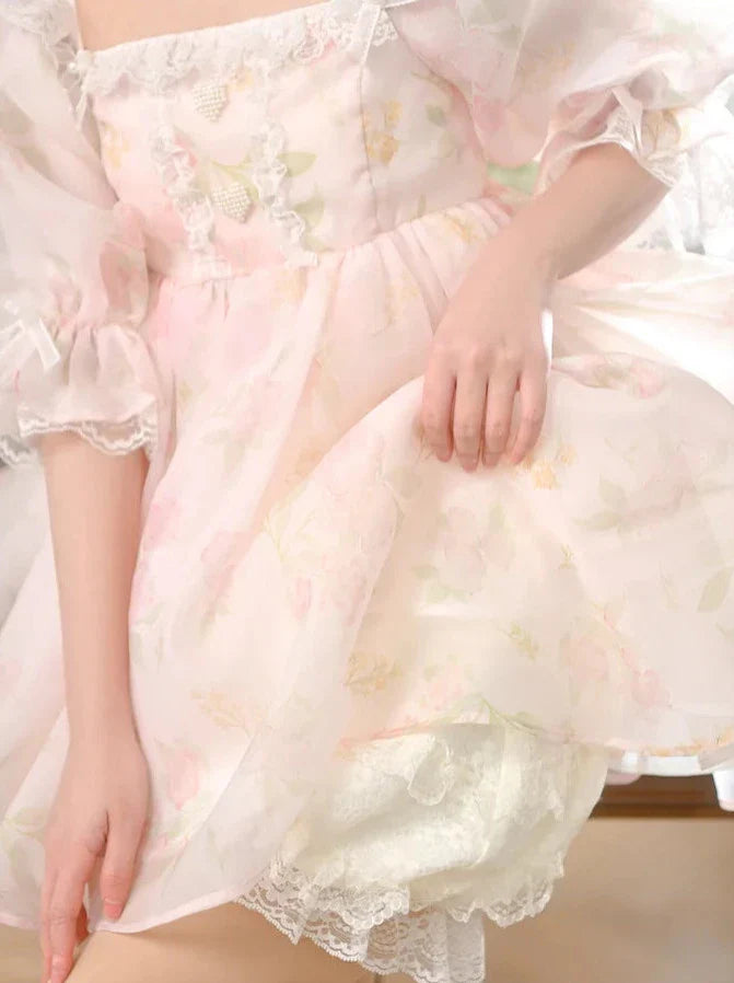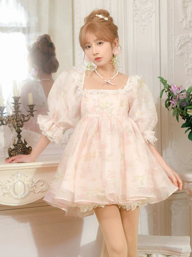 ピンクと白のオールドスクールロリータファッションドレス、蝶結びディテール、ロリータJSKセット