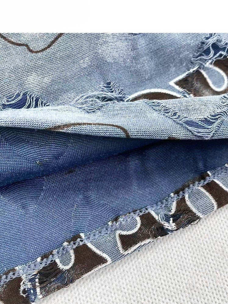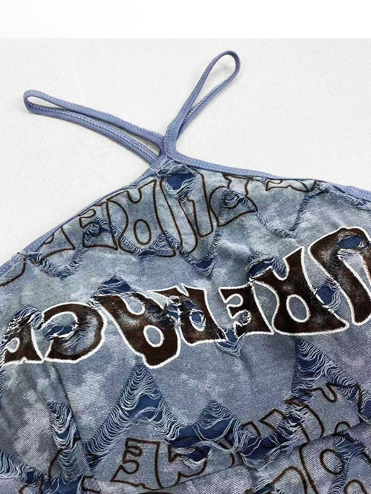 ブルーのほろ苦い可愛いグラマラスレタープリントホルターネックトップス