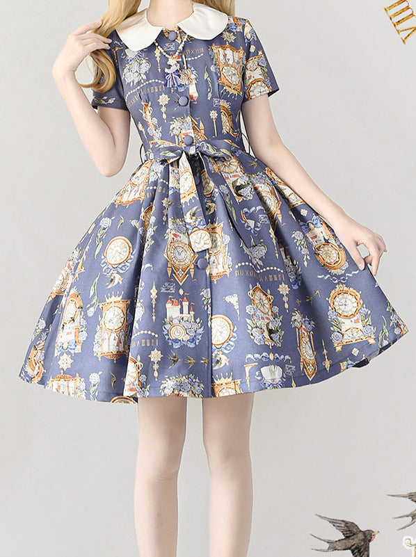青と白のオールドスクールロリータファッションドレス 蝶結びディテール JSK セット