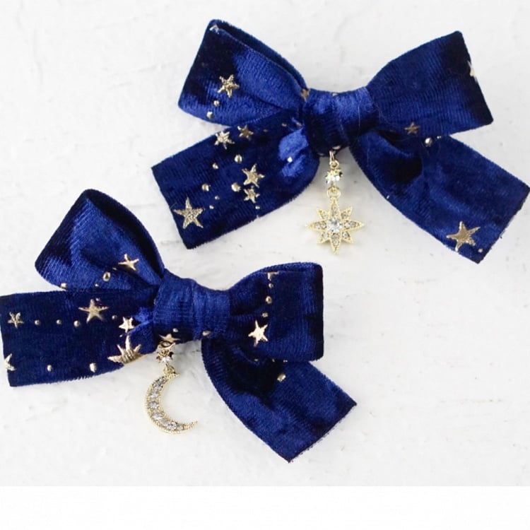 プリントムーンリボンブルーヘアクリップスターチャーム
