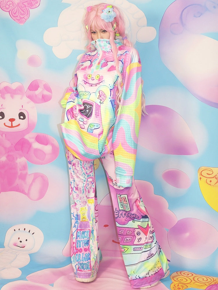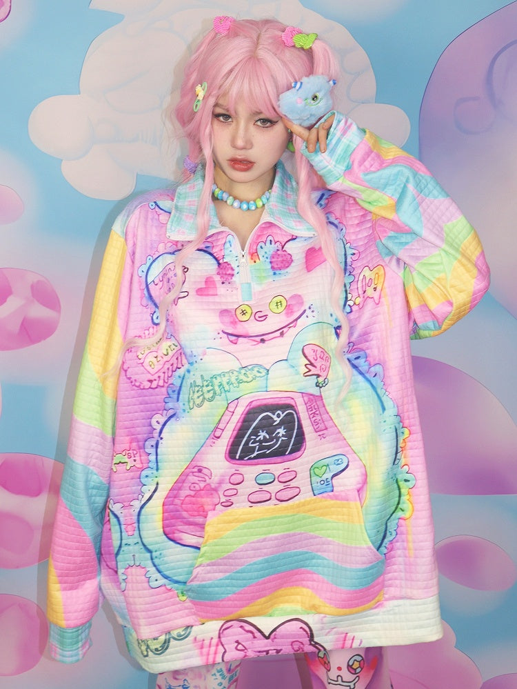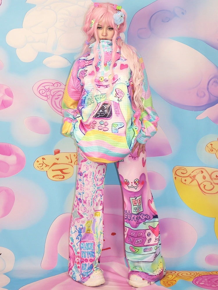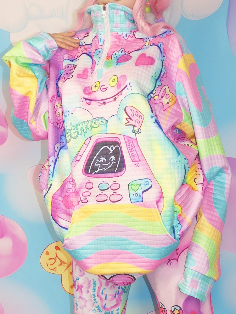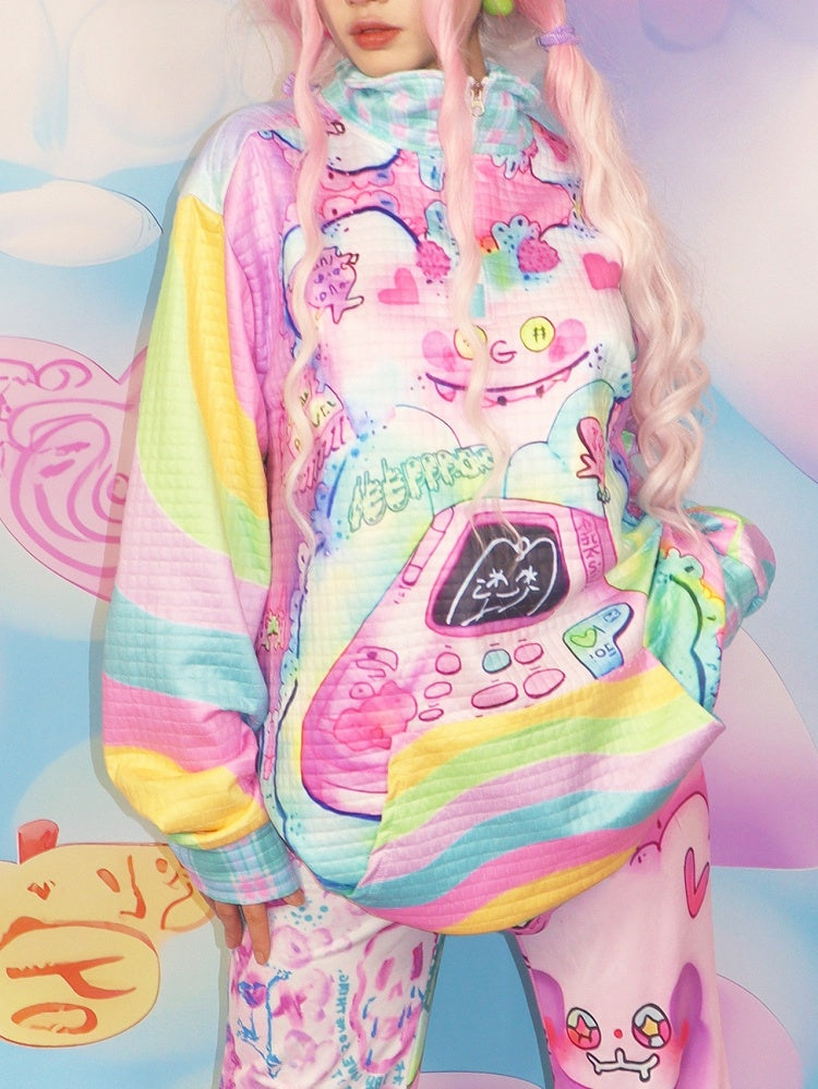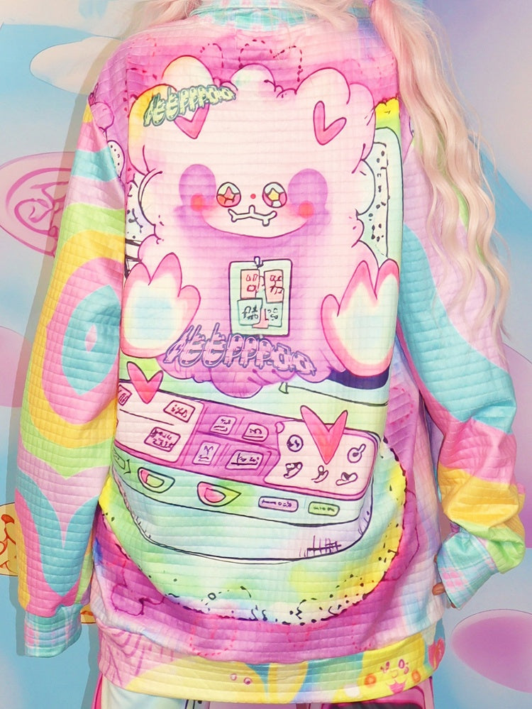 カラフルなギャルファッション漫画プリントスウェットシャツ