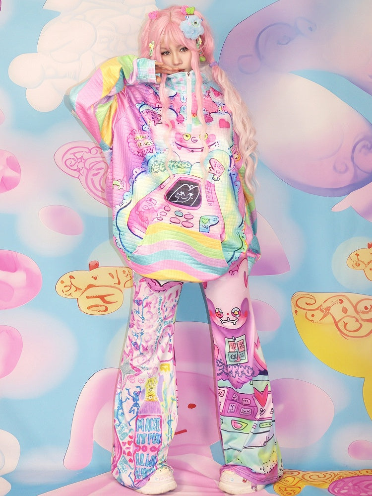 プリントスウェットシャツ ファッション 漫画 カラフル ギャル
