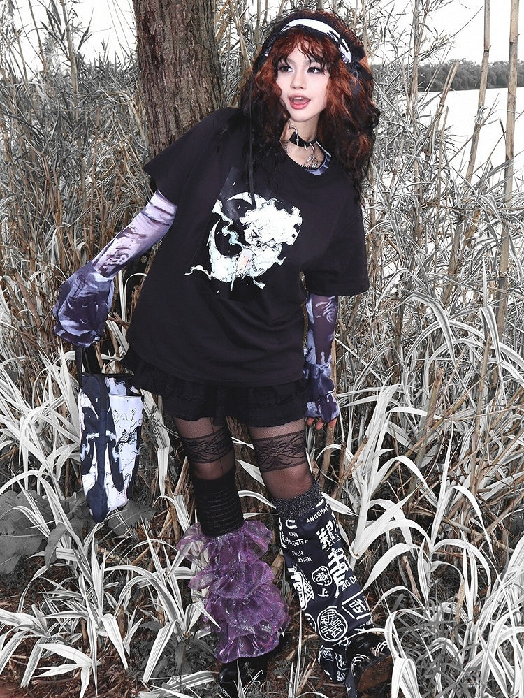 黒ギャルファッション漫画プリント半袖Tシャツ
