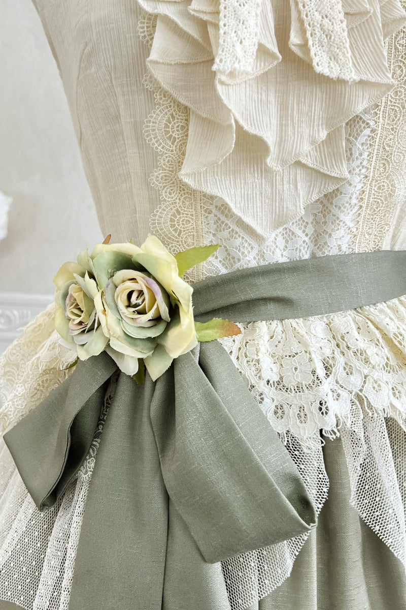 青と白のオールドスクールロリータファッションドレス 蝶結びディテール JSK セット