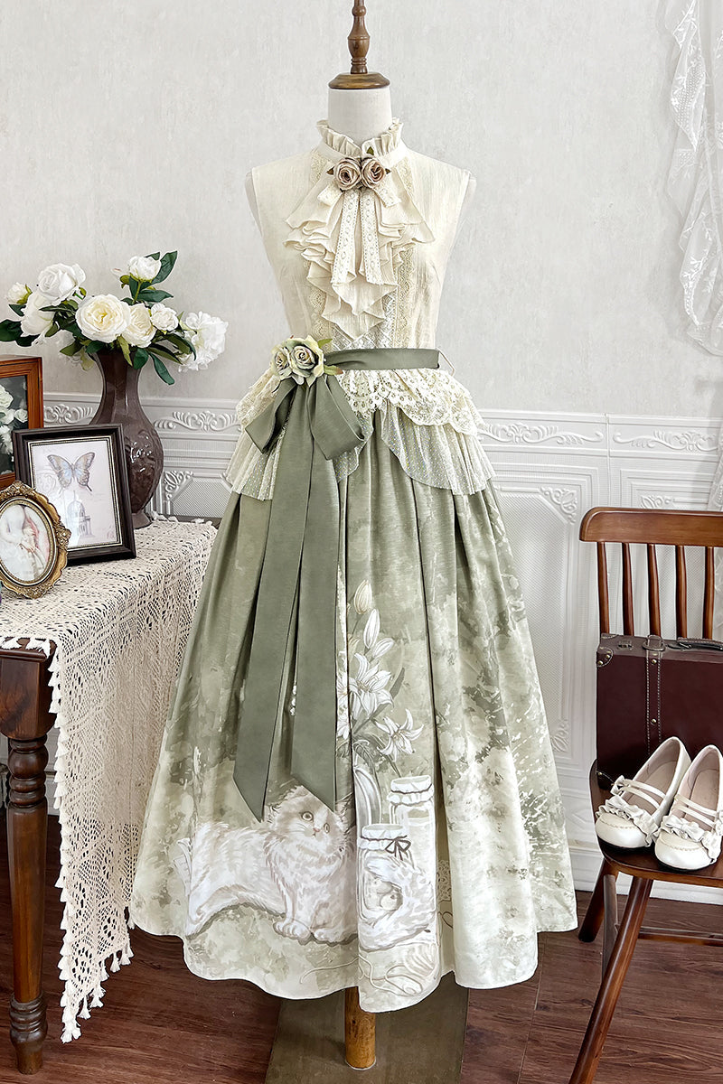 ❤タイムエレガントクラノースリーブトップ+レトロフルラスカート❤