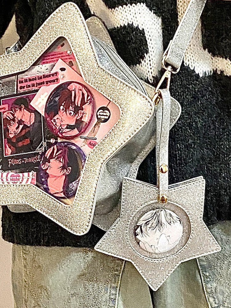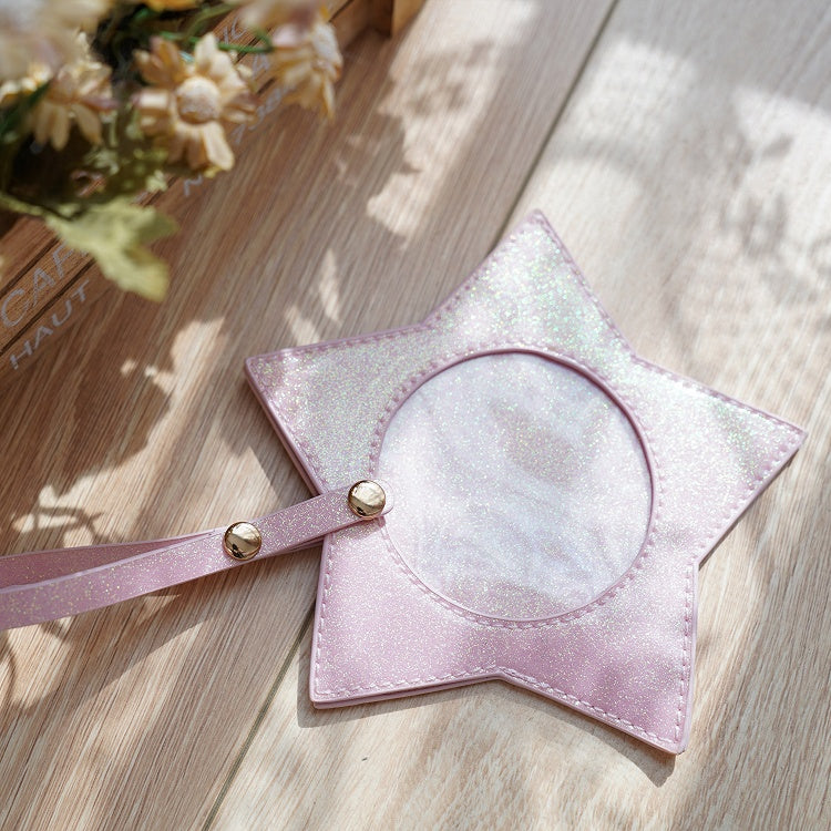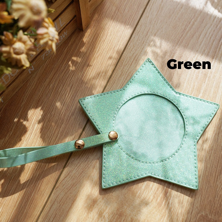 ホワイト/ピンク/グリーン/ライトブルーの星型輝くPUバッジホルダー