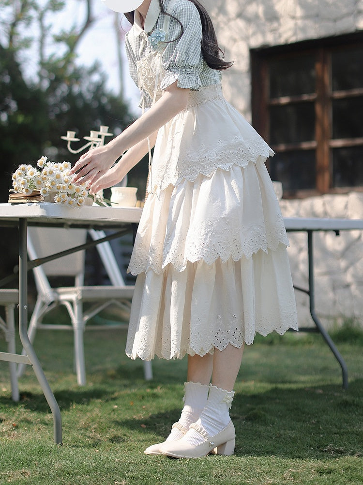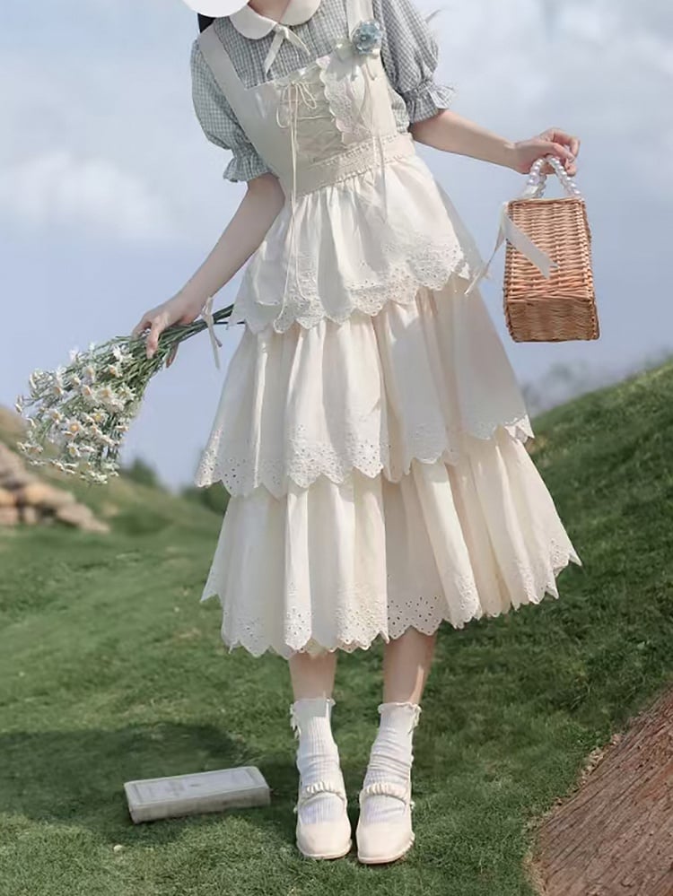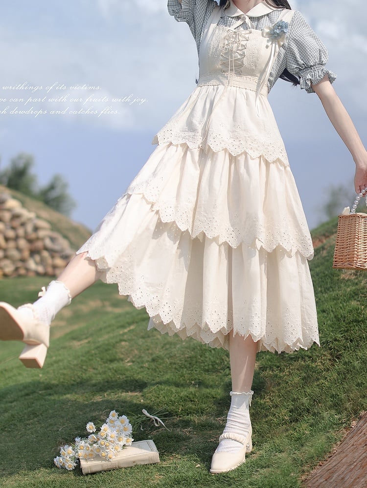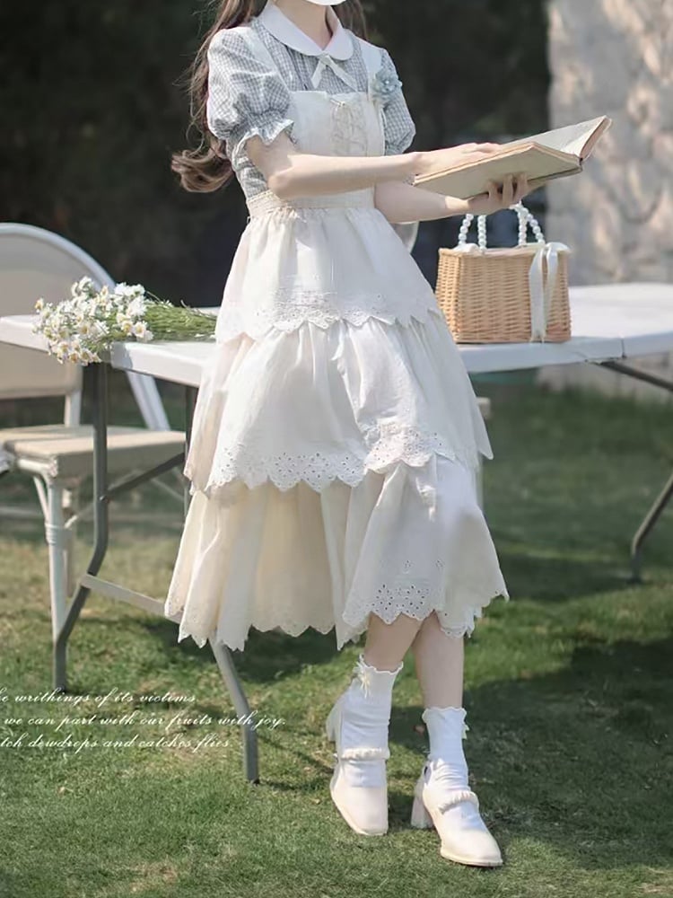 青と白のオールドスクールロリータファッションドレス 蝶結びディテール JSK セット
