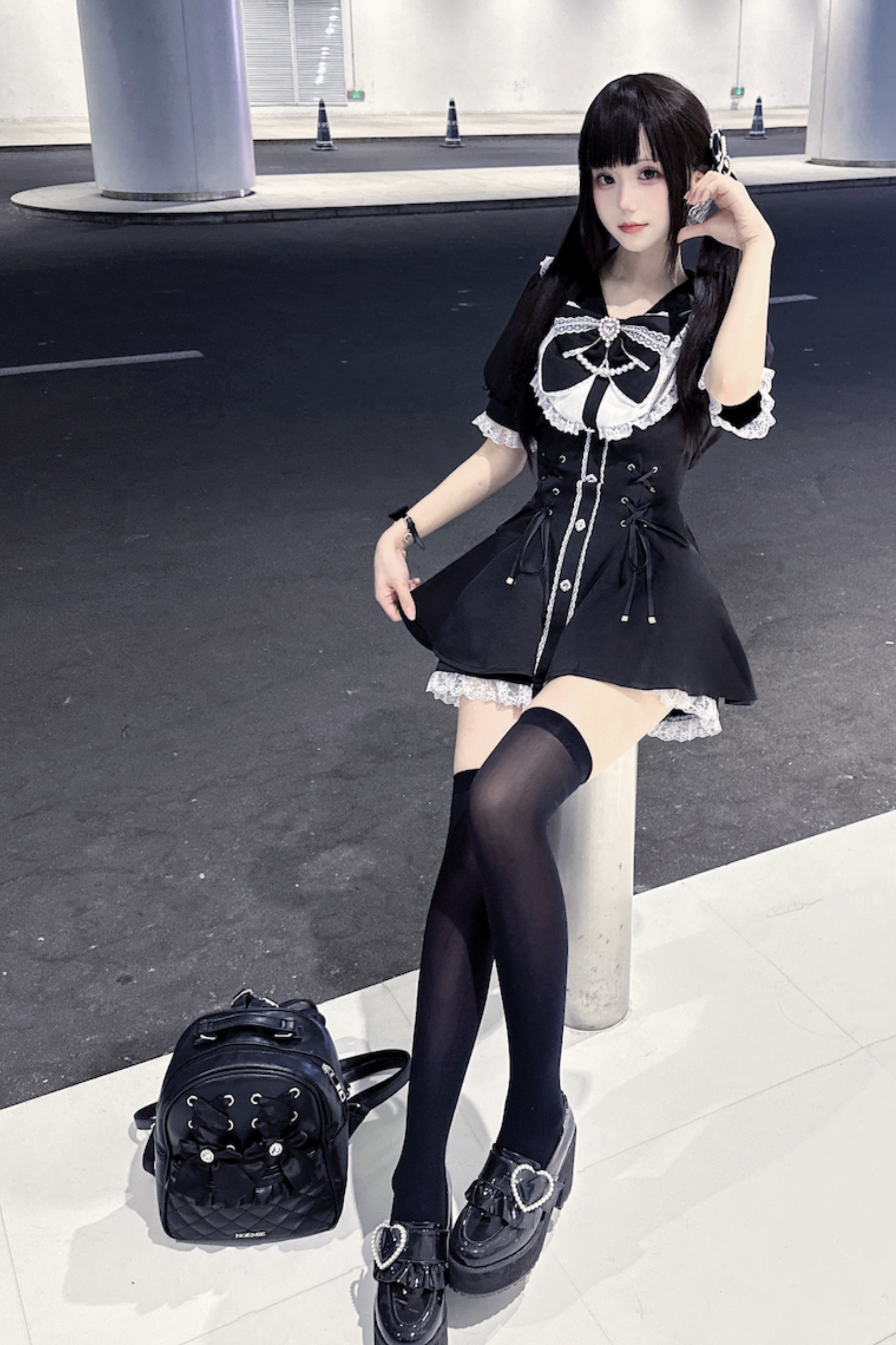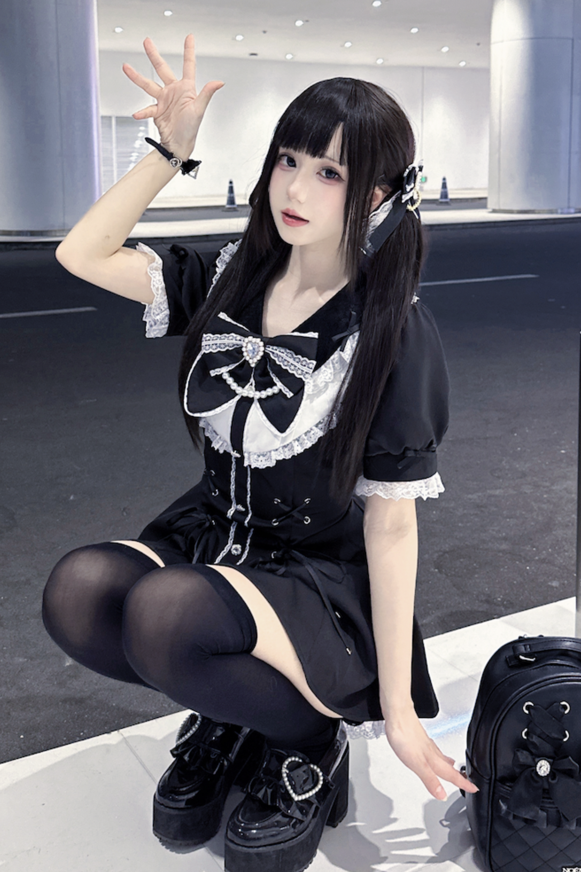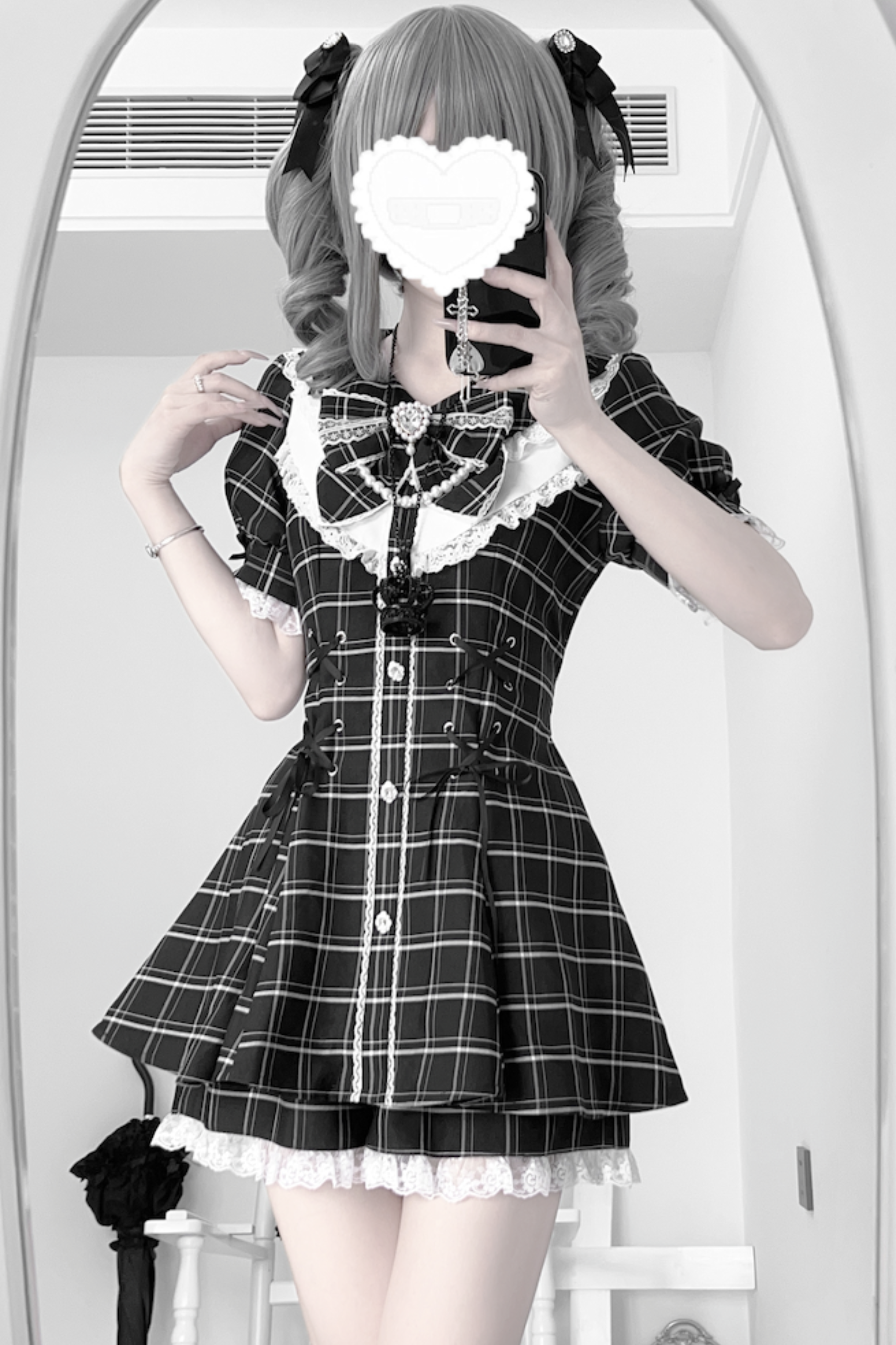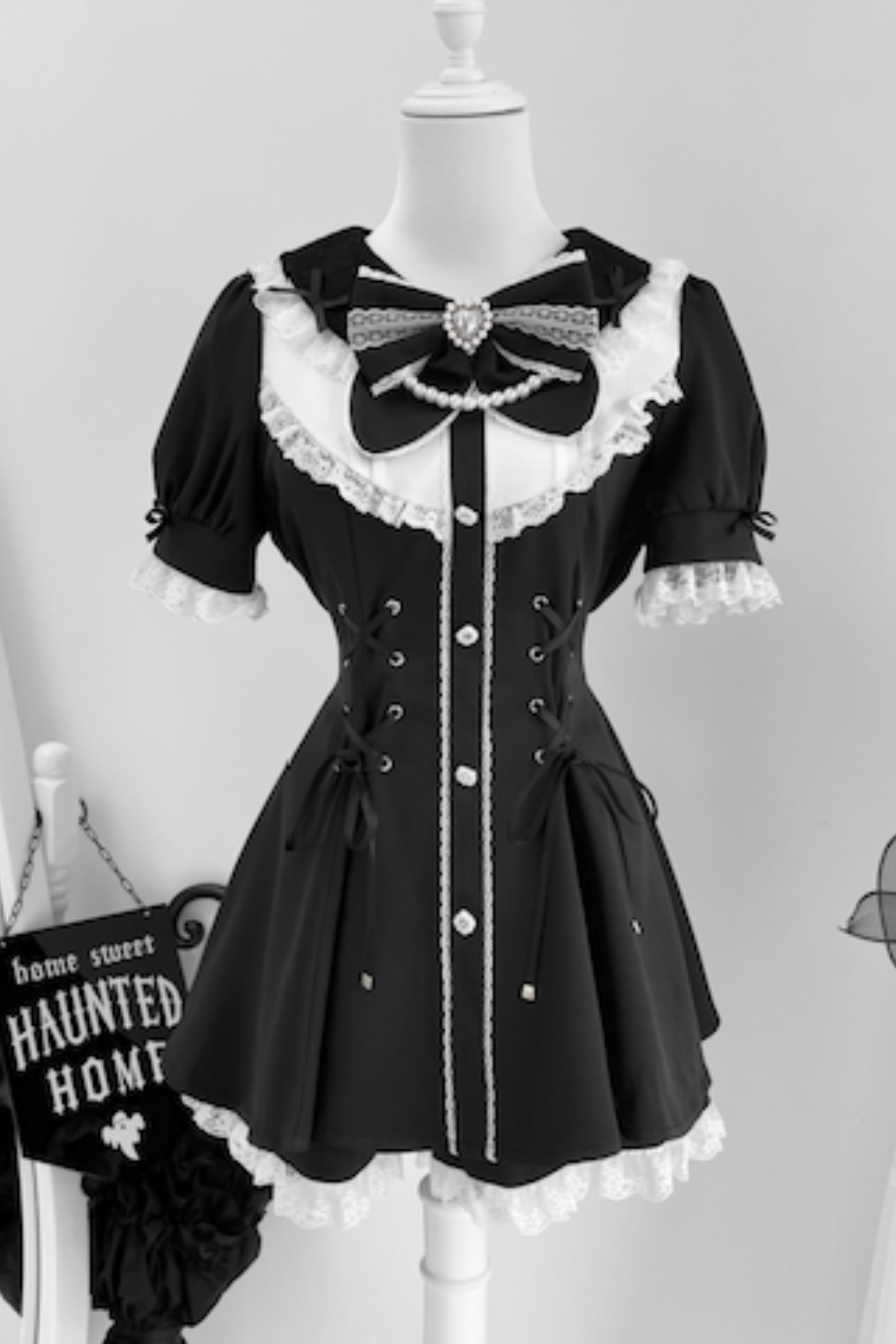 黒と白のオールドスクールロリータファッションドレス蝶結びロリータJSKセット