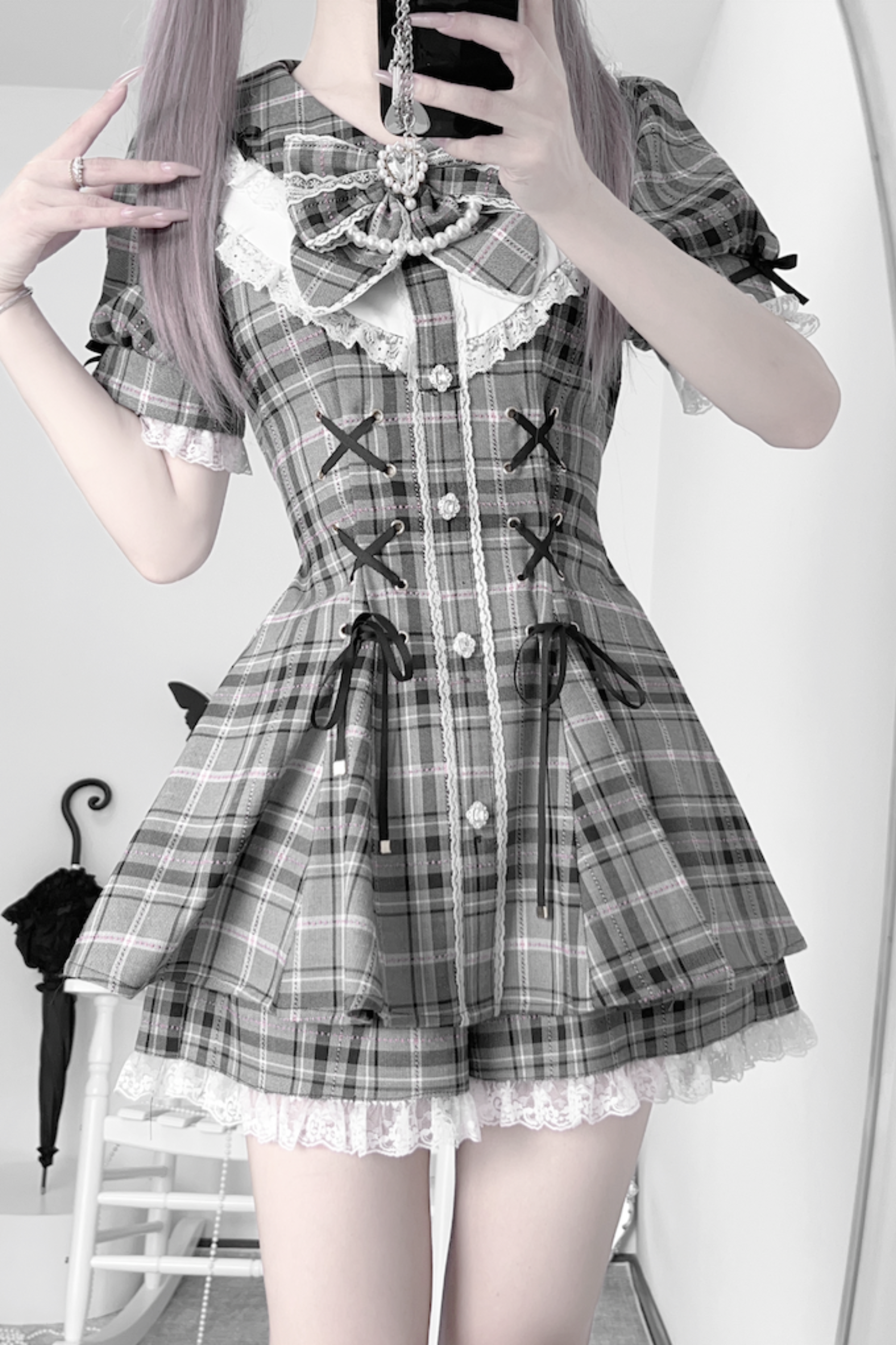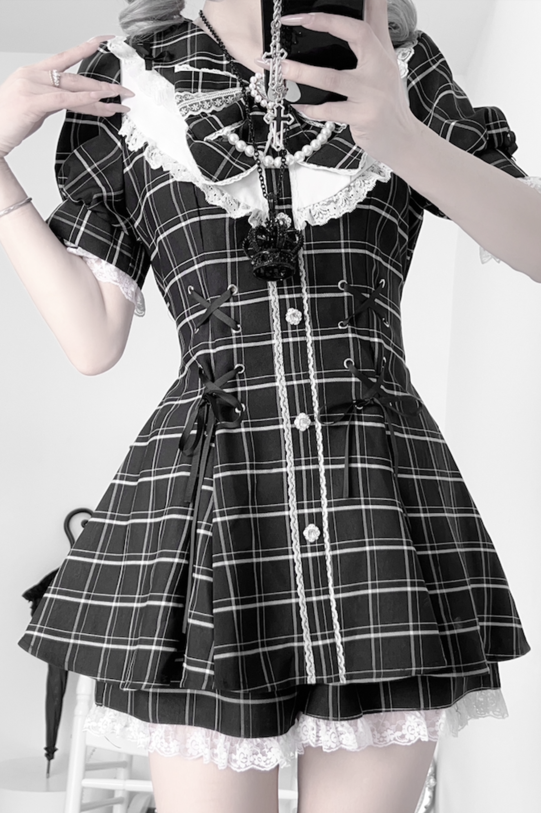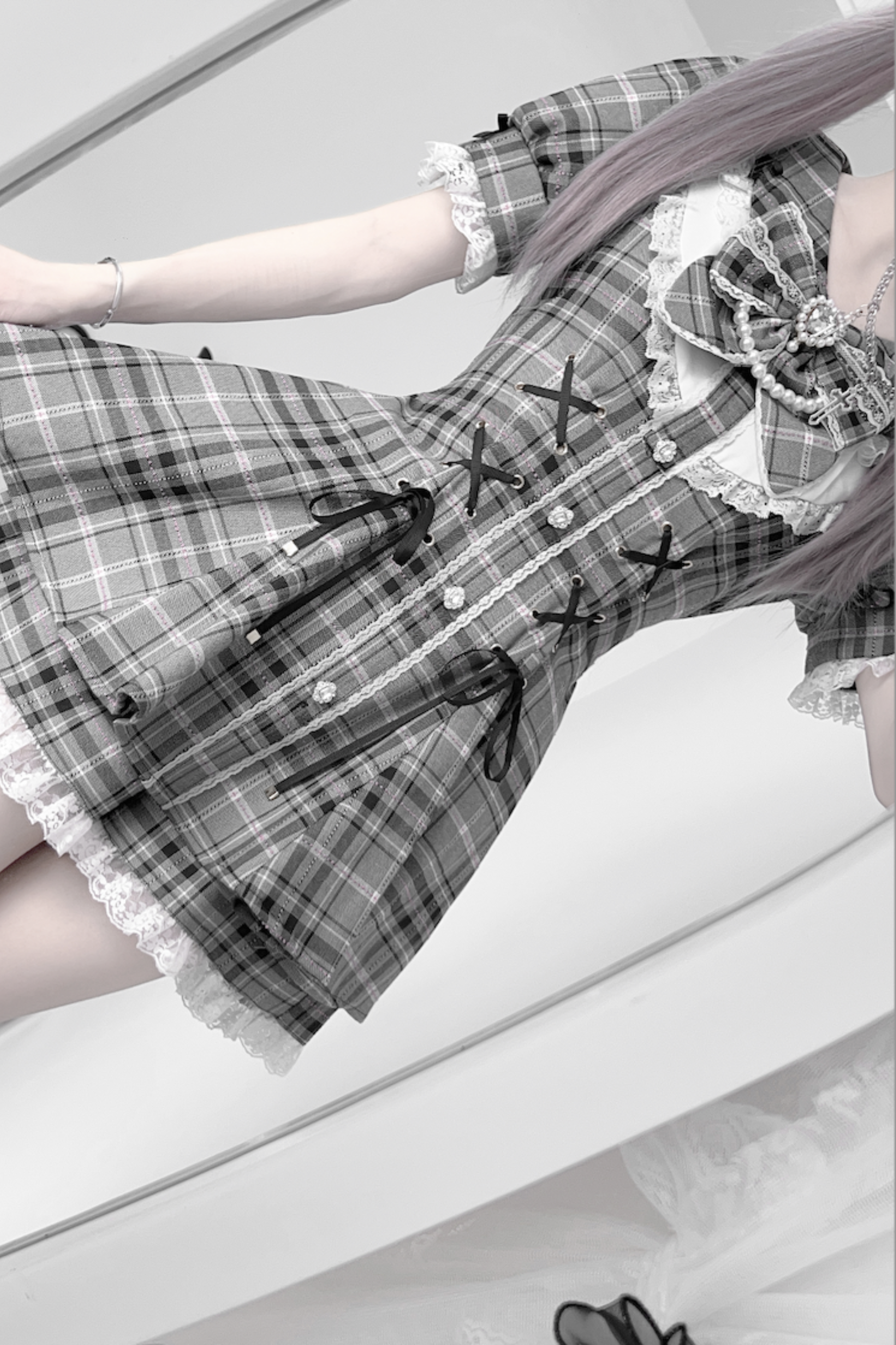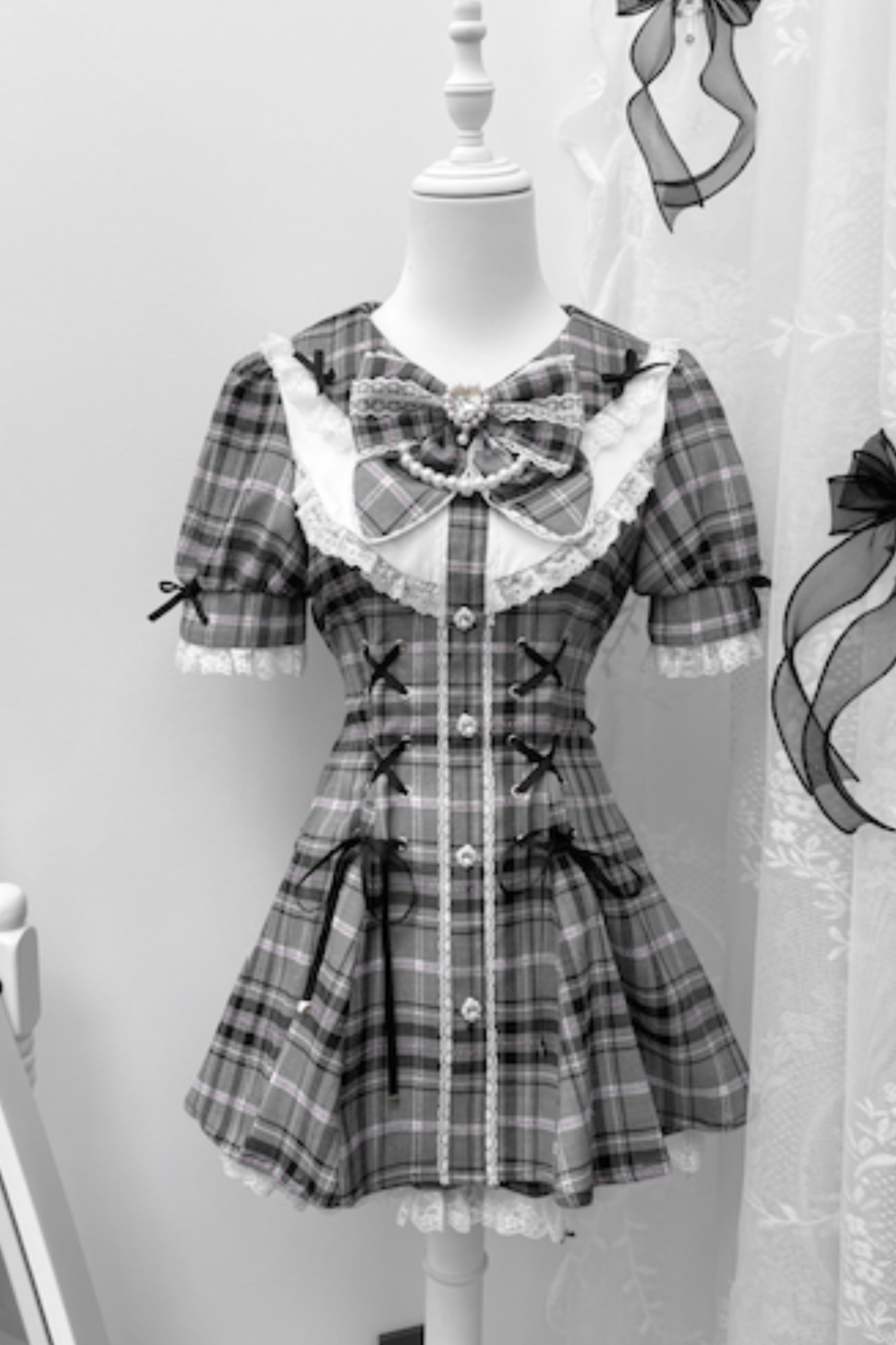 黒と白のオールドスクールロリータファッションドレス蝶結びロリータJSKセット