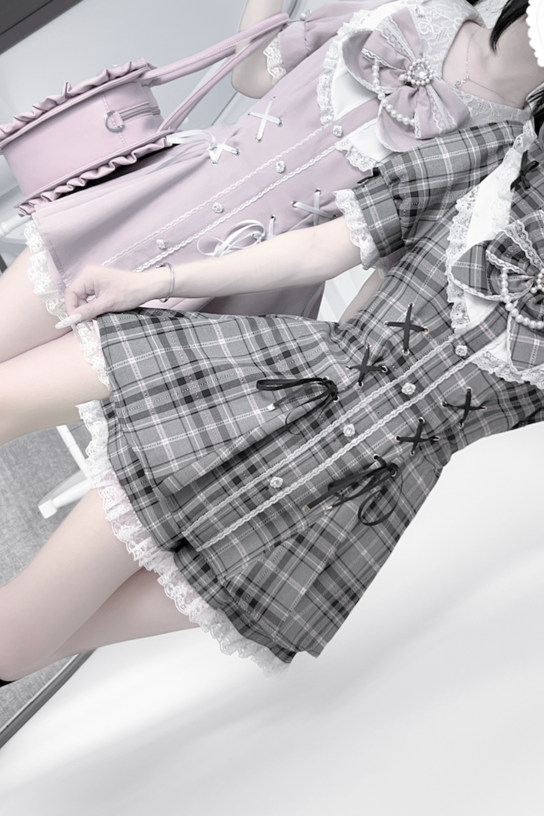 ピンクと白のオールドスクールロリータファッションドレス、蝶結びディテール、ロリータJSKセット