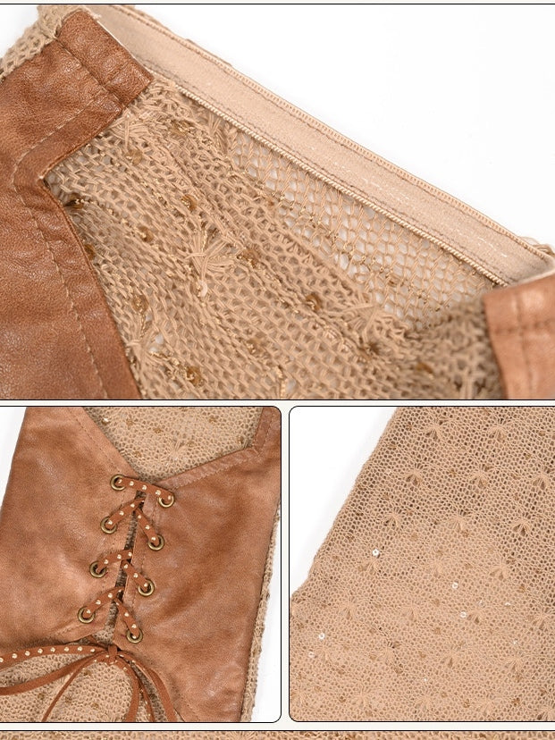 パンク レッグウォーマー レースアップ ウェイストランド ブラウン ディテール