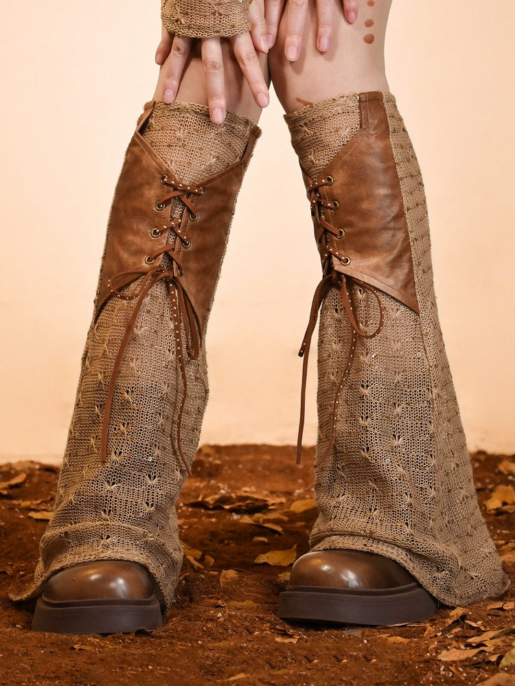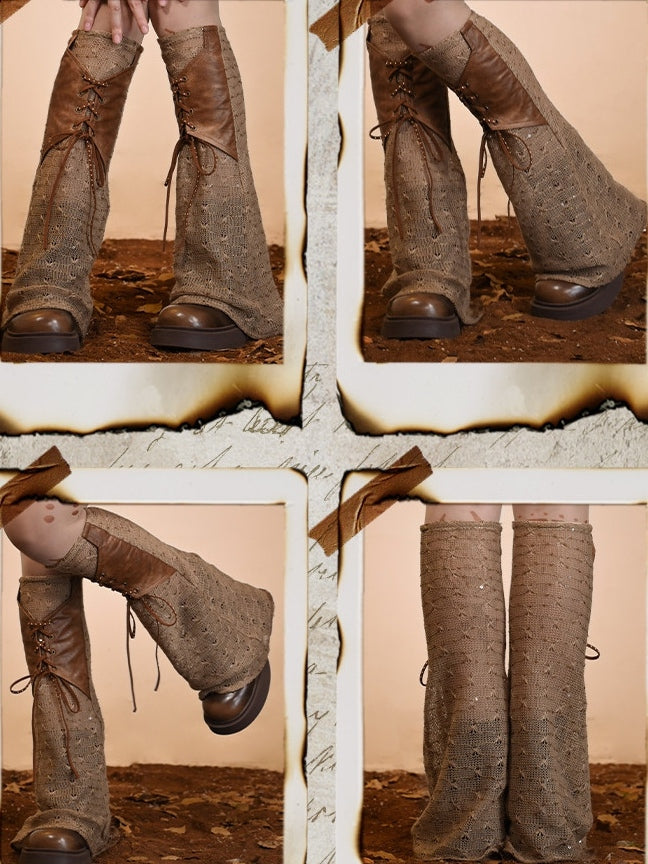 ブラウン ウェイストランド パンク レースアップディテール レッグウォーマー