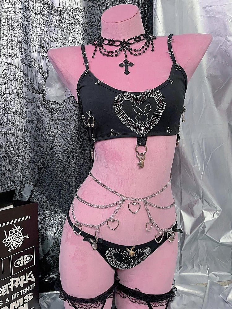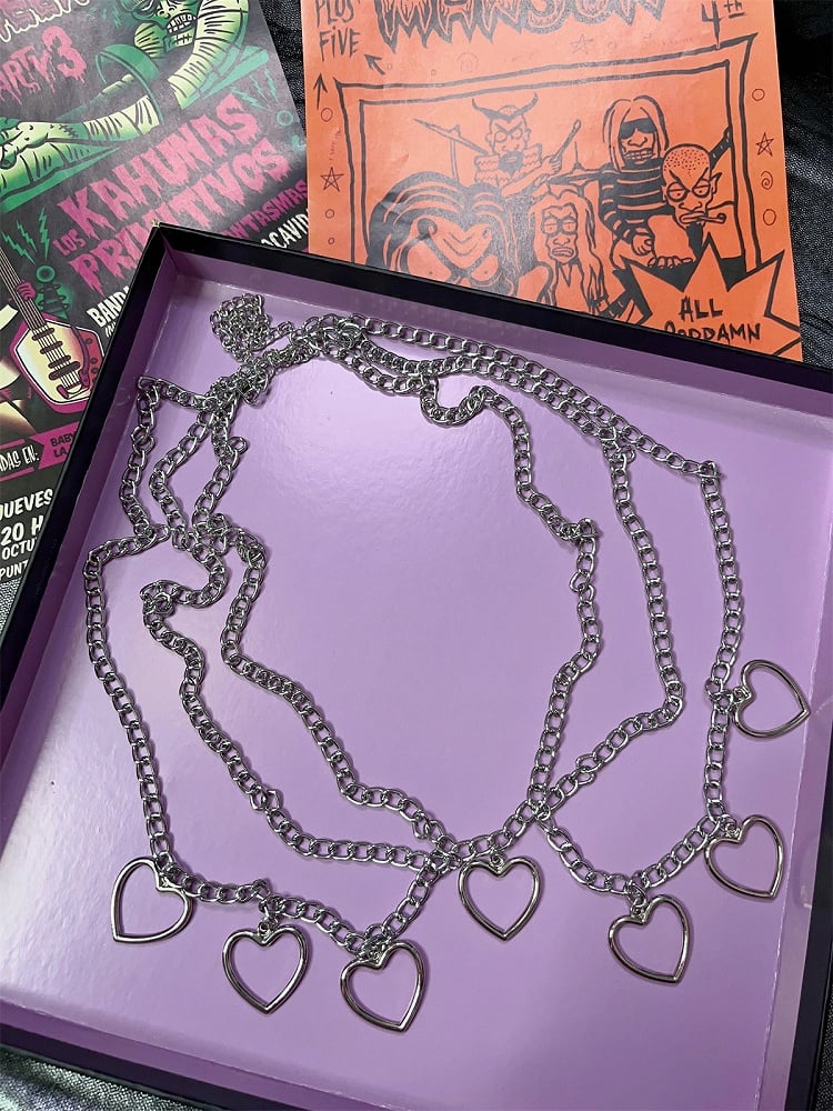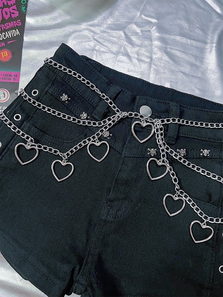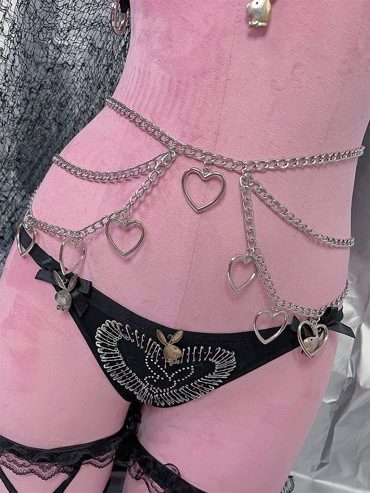 パンクなマルチレイヤーハート型チャームウエストチェーン