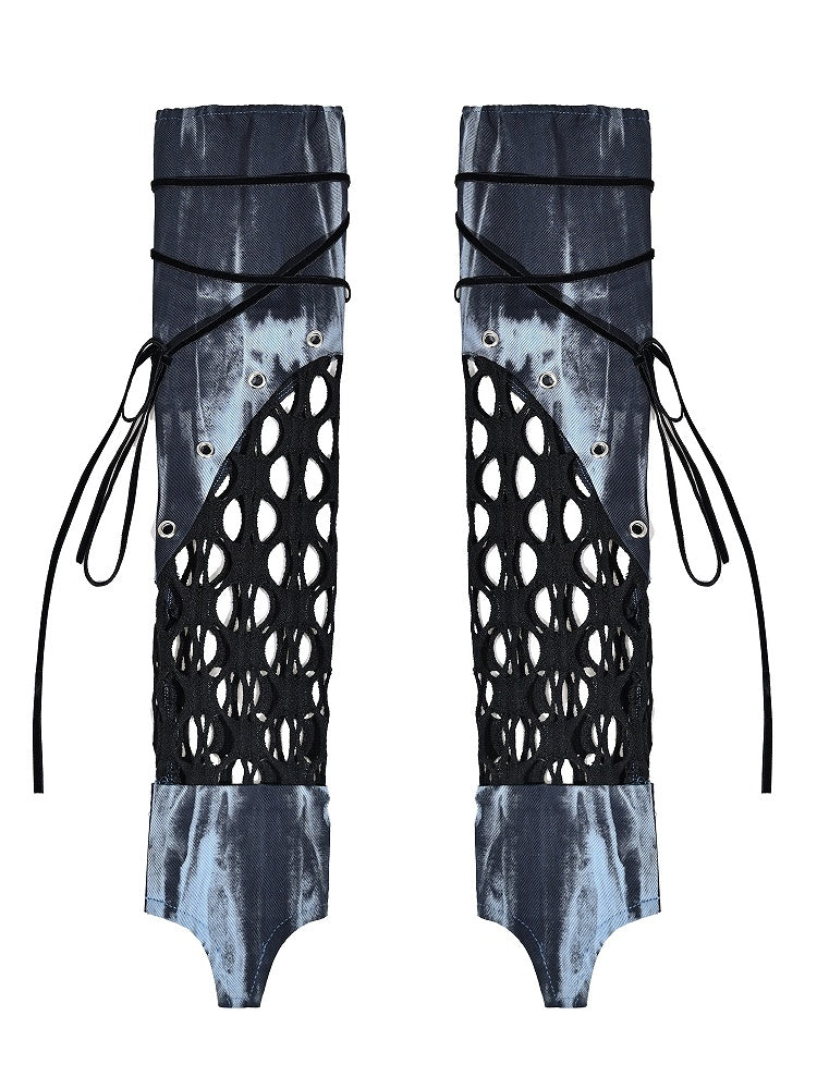 パンクロックブルーメッシュパッチワークタイダイスリーブ