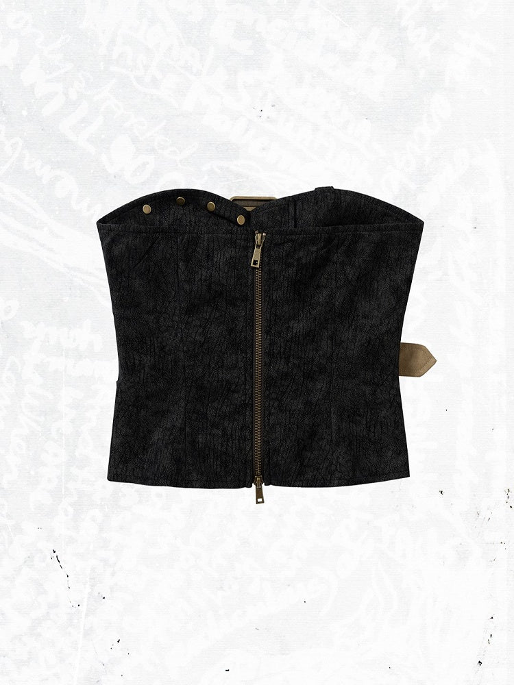 Black & Yellow Punk Rococo Three-Strap Bustier with Cross Embroidery & Metal Buckles