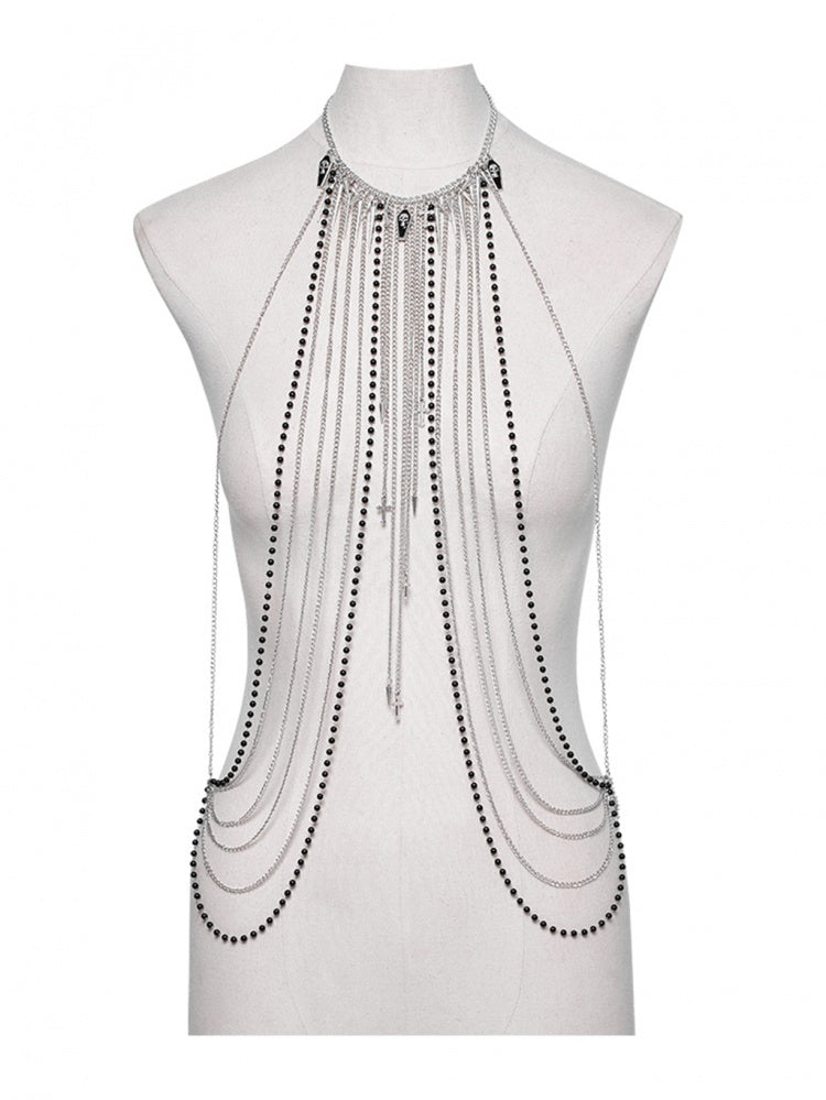 パンクタッセルチェストチェーンで、コーディネートにエッジの効いたアクセントをプラス。遊び心とチャーミングな雰囲気をプラスするタッセルは、キュートな装いにもパンクな装いにもぴったりのアクセサリーです。このスタイリッシュなチェストチェーンで、いつでも大胆な存在感を放ちましょう。