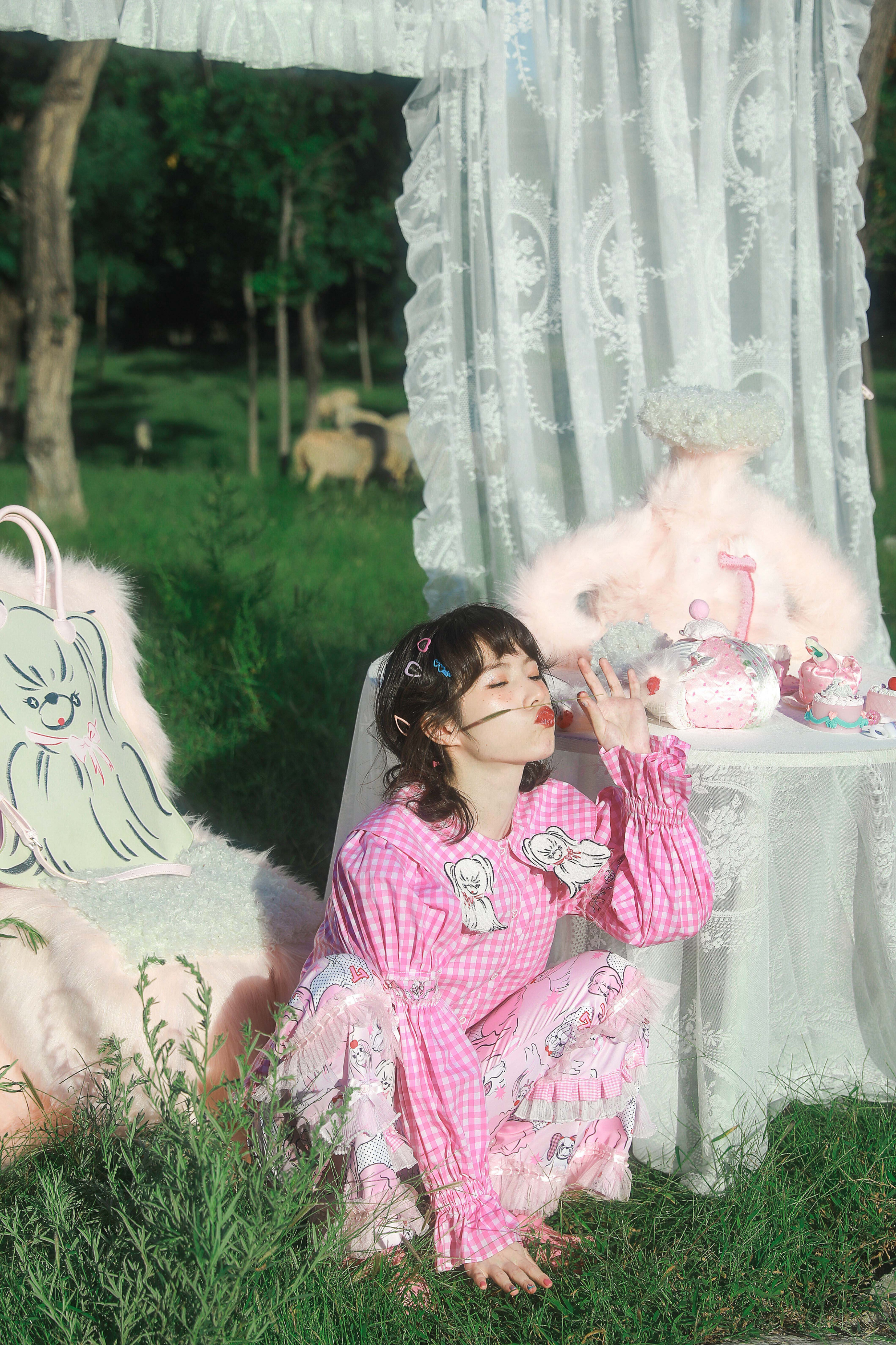 ピンクと白のオールドスクールロリータファッションドレス、蝶結びディテール、ロリータJSKセット