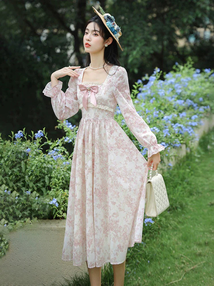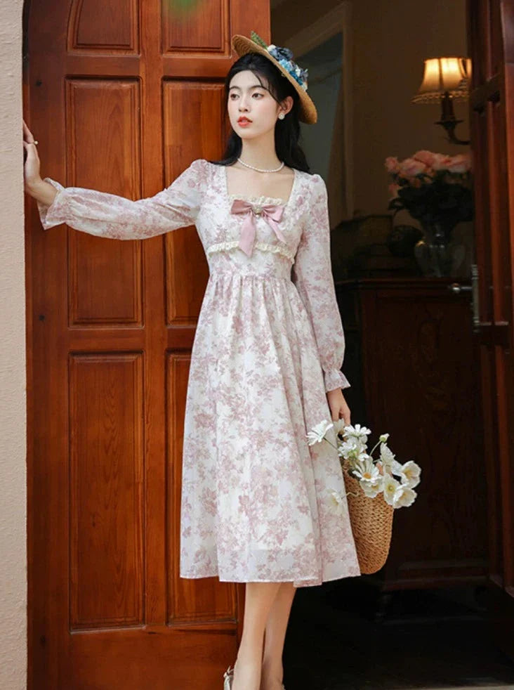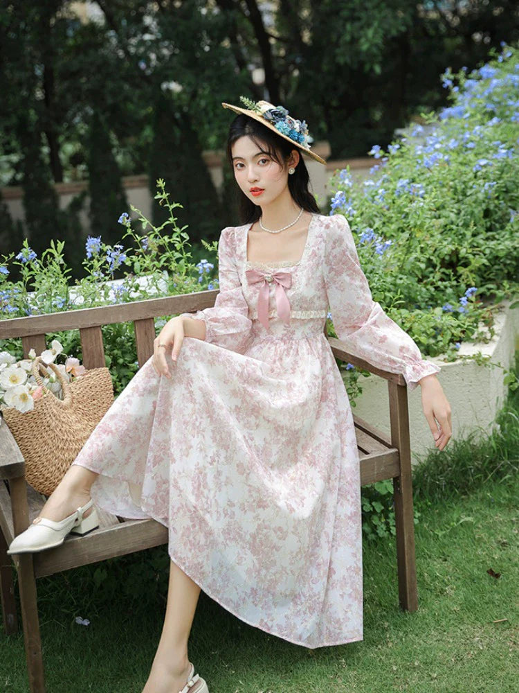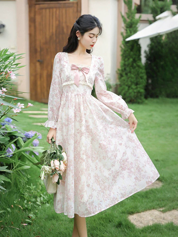 ピンクと白のオールドスクールロリータファッションドレス、蝶結びディテール、ロリータJSKセット
