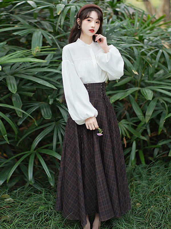 ピュア+スカート ホワイト レースアップ チャックブラウス