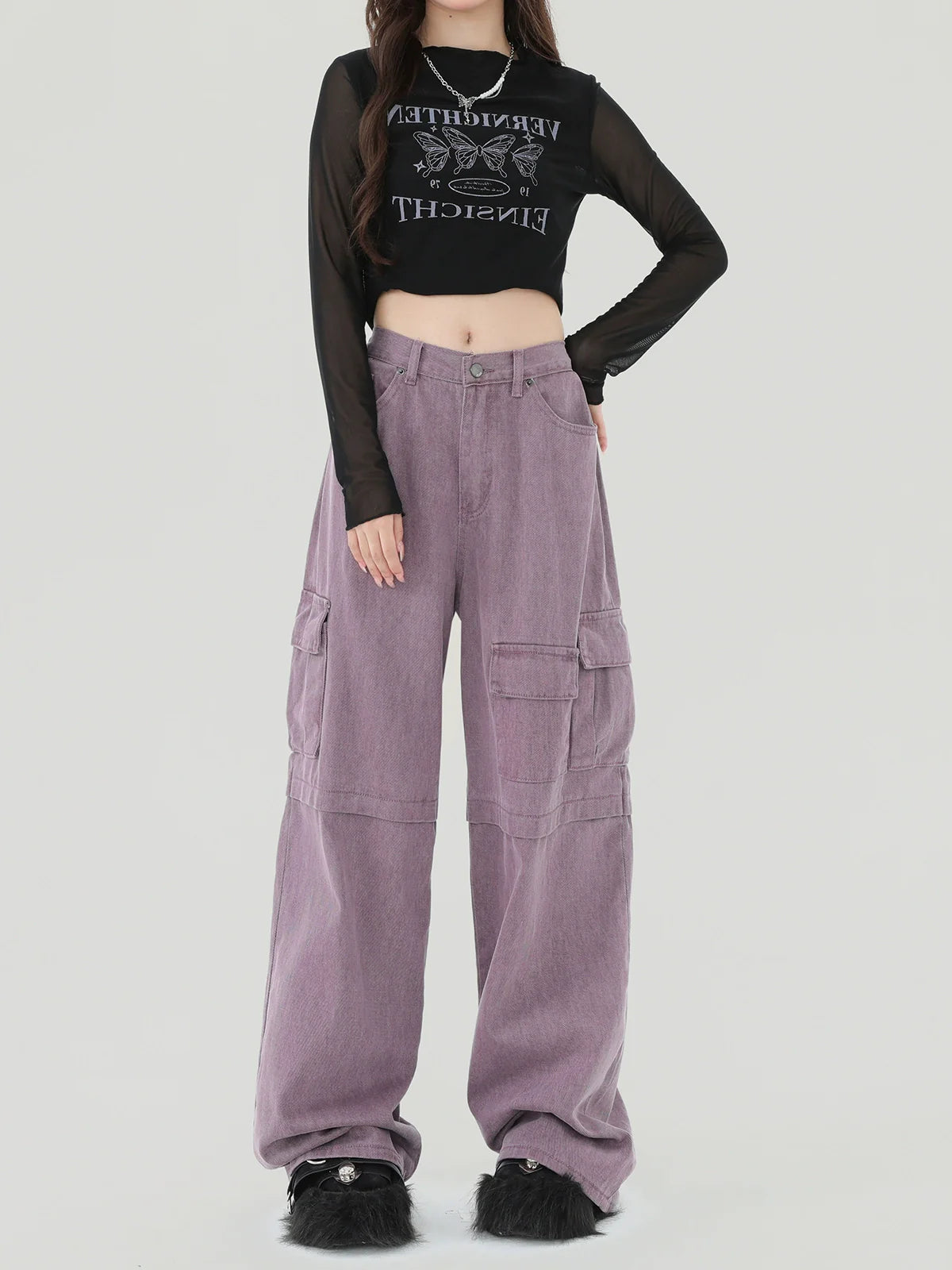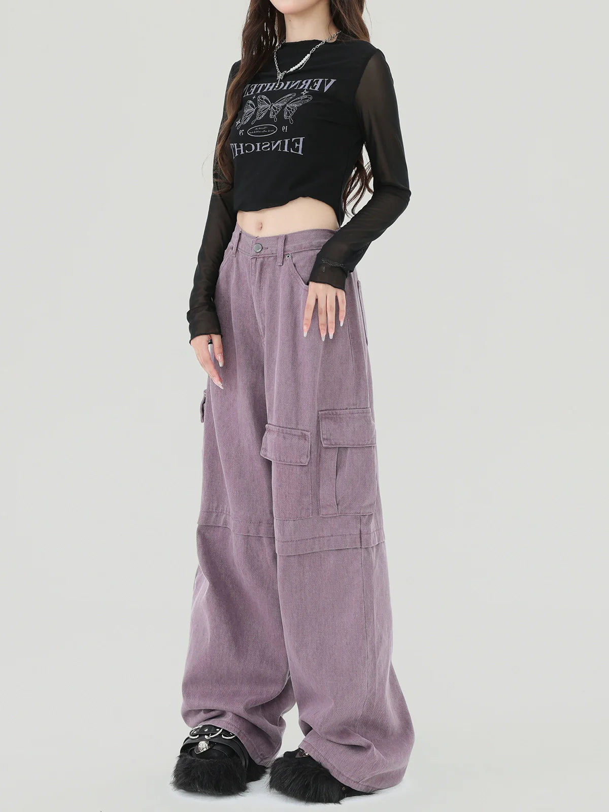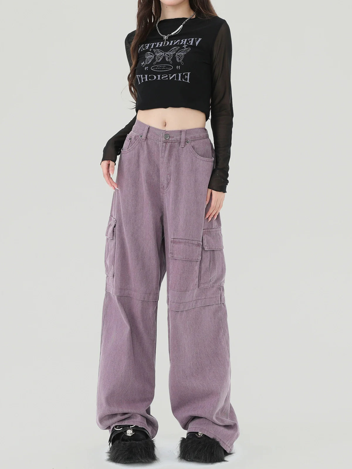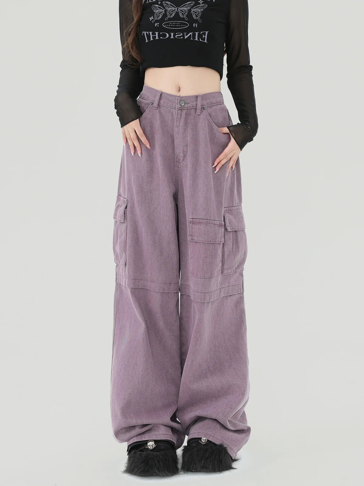 愛らしいパープルのアメリカンカーゴデニムパンツ レトロで、ワードローブをワンランクアップさせましょう。上質な職人技とスタイリッシュなレトロデザインが特徴のこのパンツは、きっと注目を集めることでしょう。カーゴポケットが機能性を高め、デニム素材が耐久性も抜群です。キュートでスタイリッシュなルックにぴったりです。