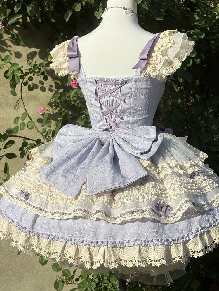 青と白のオールドスクールロリータファッションドレス 蝶結びディテール JSK セット