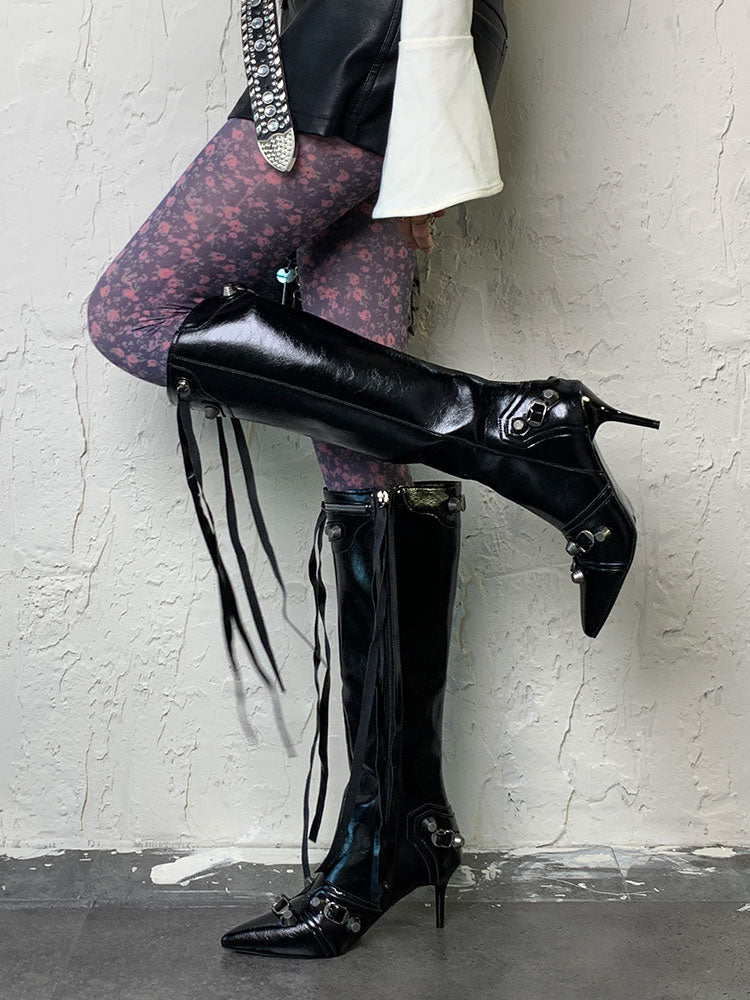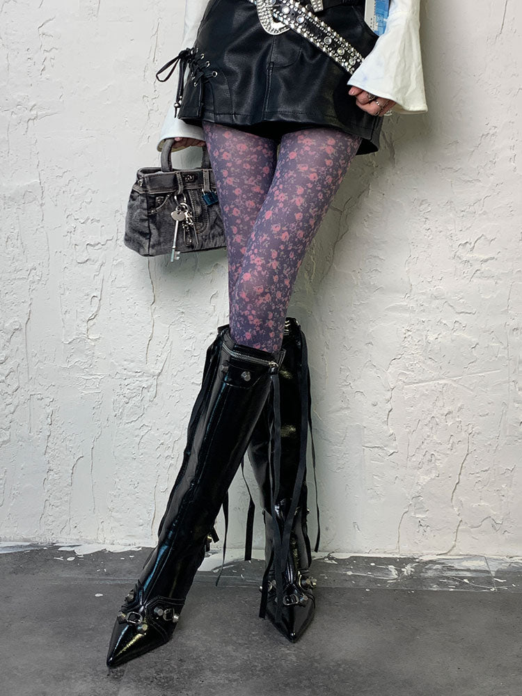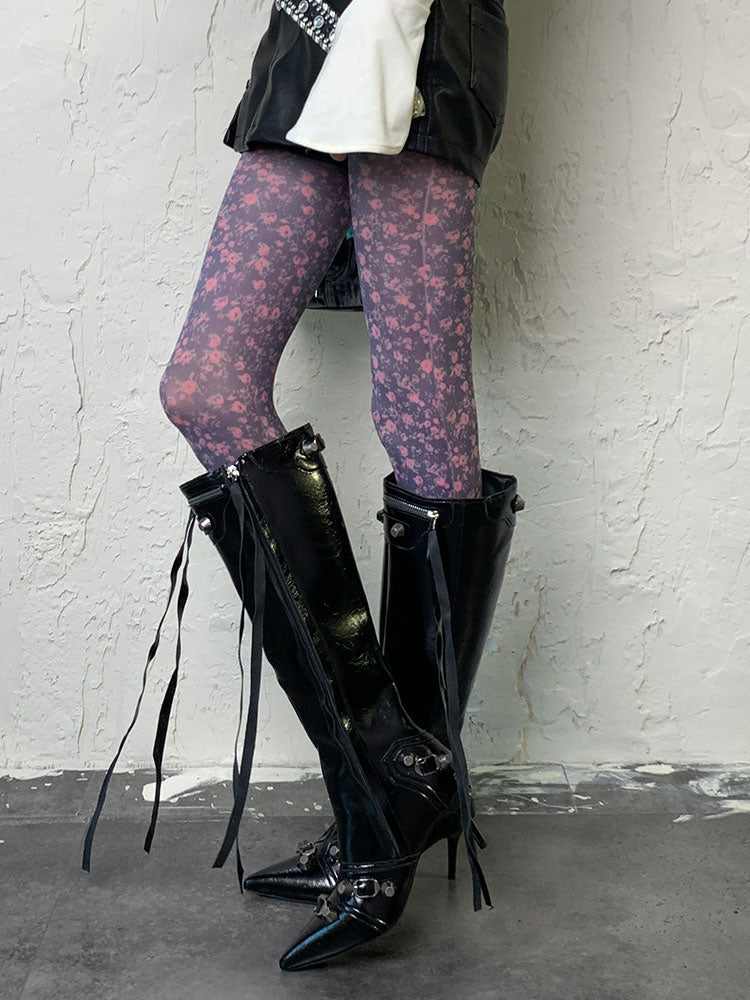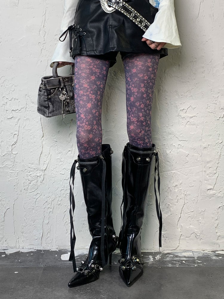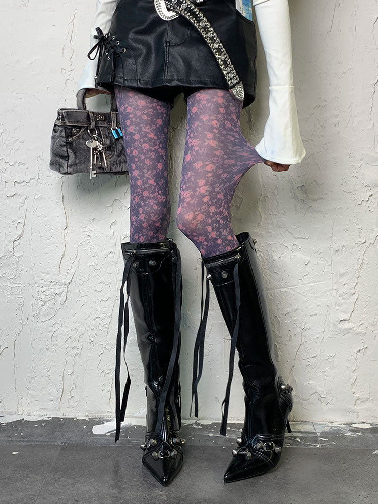 パープルY2K花柄タイツ